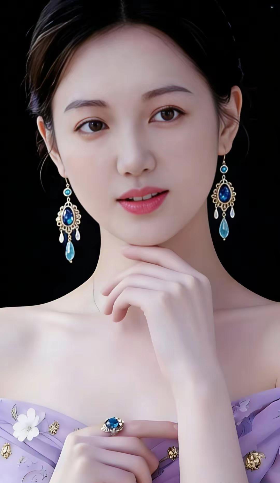 优雅紫裙,蓝宝石耳环,精致妆容,气质满分!💎🌸💄