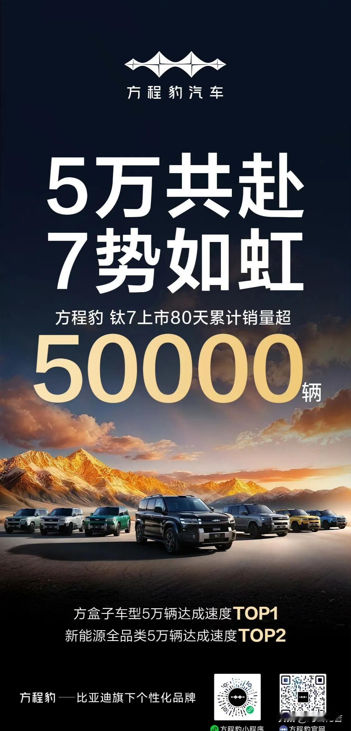 这个车一天勾引我八百遍,我的比亚迪驱逐舰05都放在哪里吃灰了。方程豹钛7,上市80天,销量破5万,连续两个月销量破两万。为什么钛7这么火。我觉得主要是方程豹钛7够大,又是方盒子。外观好看,帅气,内饰豪华,超长纯电续航。2026年,我的愿望是全款提方程豹钛7,你们的愿望是什么方程豹钛7