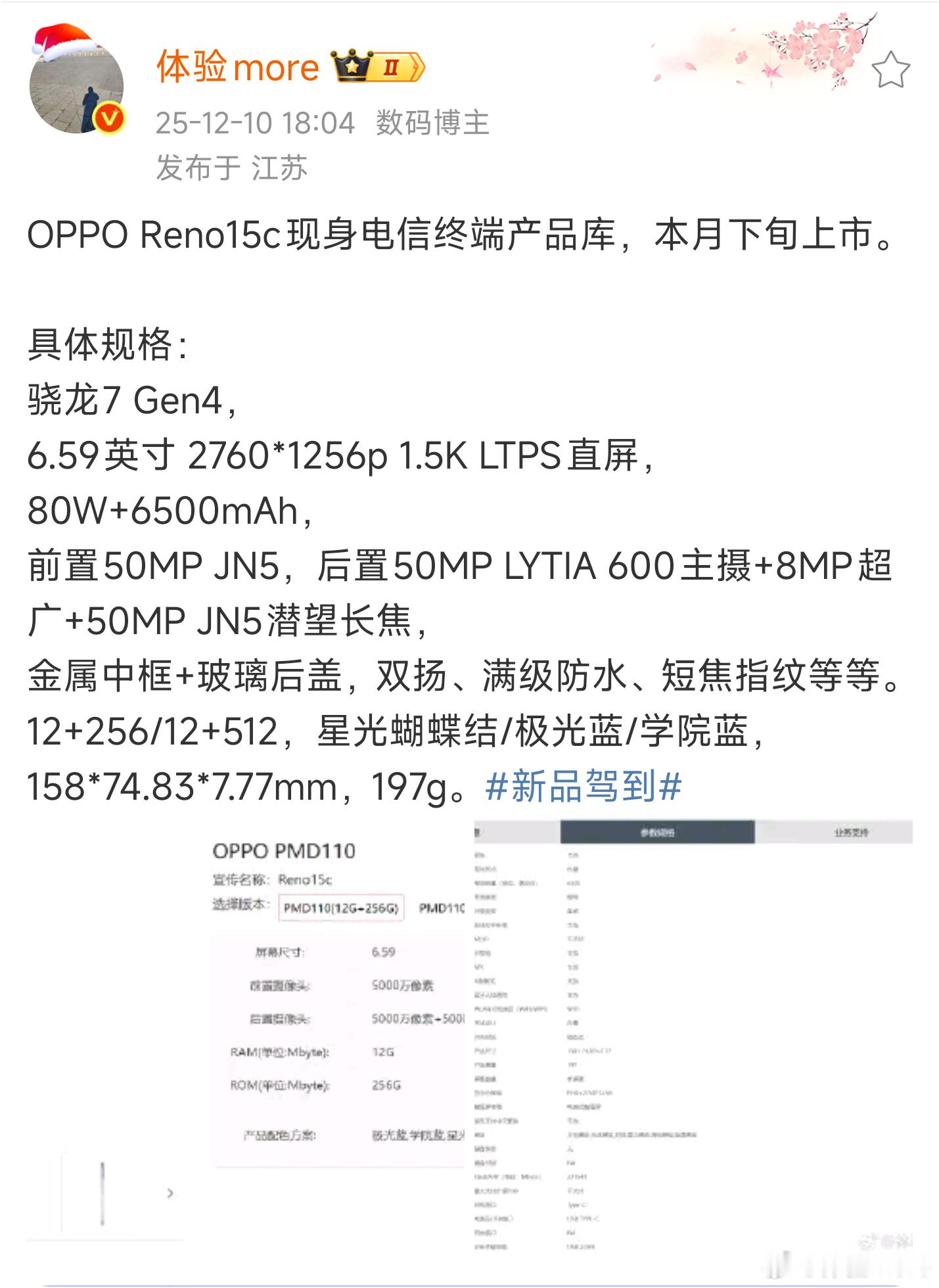 OPPO Reno15c开启预订,19号正式开售,12+256,289912+512,3199比OPPO Reno15价格低100元,感觉如何?OPPO Reno15
