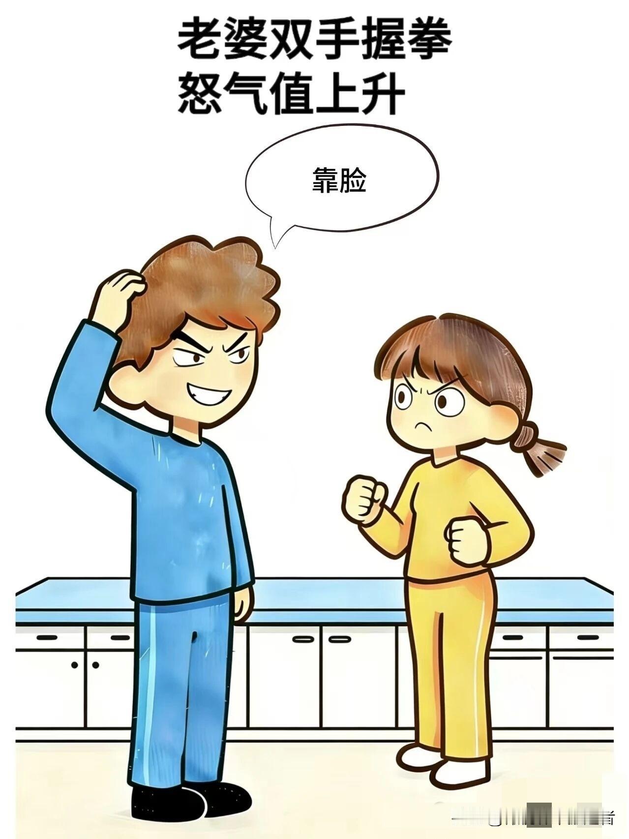 趣味漫画:老婆问老公:这么多年你都没干过家务,你说你是怎么做到的,老公:靠脸,老婆大怒:你是说自己很帅吗,老公:不是的,是靠厚度