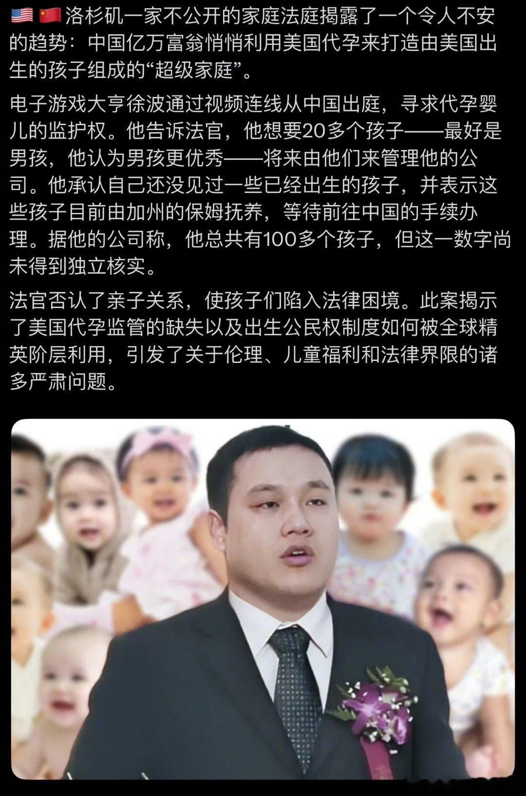 美媒揭露中国亿万富翁赴美代孕生子赴美代孕生子,少则几个,多则100多个,中国亿万