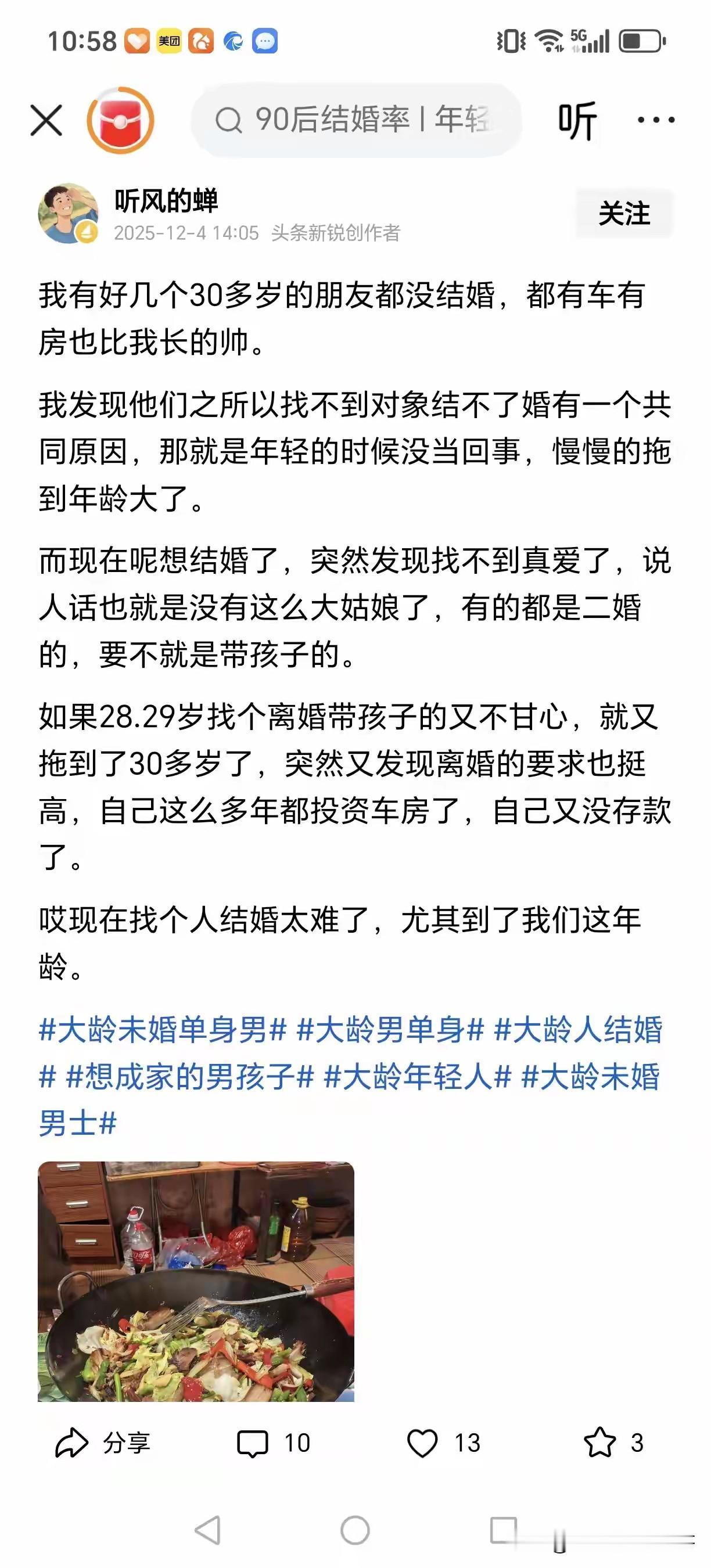我今年三十八岁,的确相比于20多岁,30多岁的时候,现在想要谈恋爱,想要结婚的冲动的确没有以前那么强烈了,所以说花要在最美好的季节去开,人结婚也应该在最有冲动,最有激情的年纪去结婚,否则的话你就会不断的陷入一个死循环,就是因为你自己年龄大了,然后你精力体力都不够了,稍微远一点也不愿意谈恋爱了,晚上也不愿意出去吃夜宵了,不愿意出去看电影了,你会变得越来越封闭,越来越自卑,越来越内向,反而是那些年轻人就容易冲动,然后一冲动就住在一起了,一住在一起就怀孕了,两个人可能就结婚了,不像我们这些快40的人,就对于爱情根本没有新鲜感了,都没有什么期待了,也可能之前谈过几段恋爱,受过伤害,所以说对于爱情根本不敢抱有任何期待和希望,因此的话,大家谈恋爱还是要趁早,结婚还是要趁早,千万不要拖到像我这种地步,高不成低不就的!