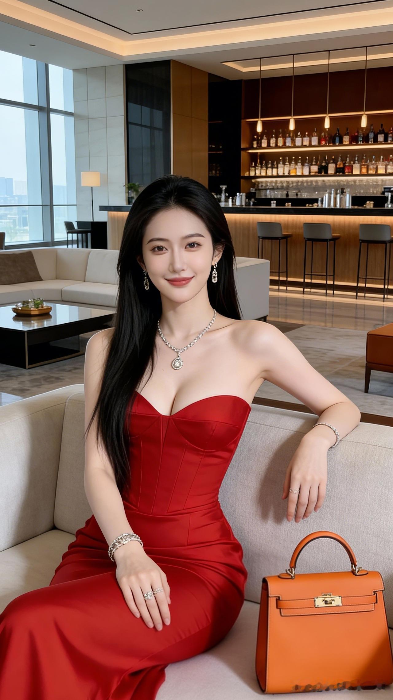 红衣美人倚栏坐,笑语盈盈意自闲。最美的女人长啥样优雅红裙,闪耀酒吧,美轮美奂