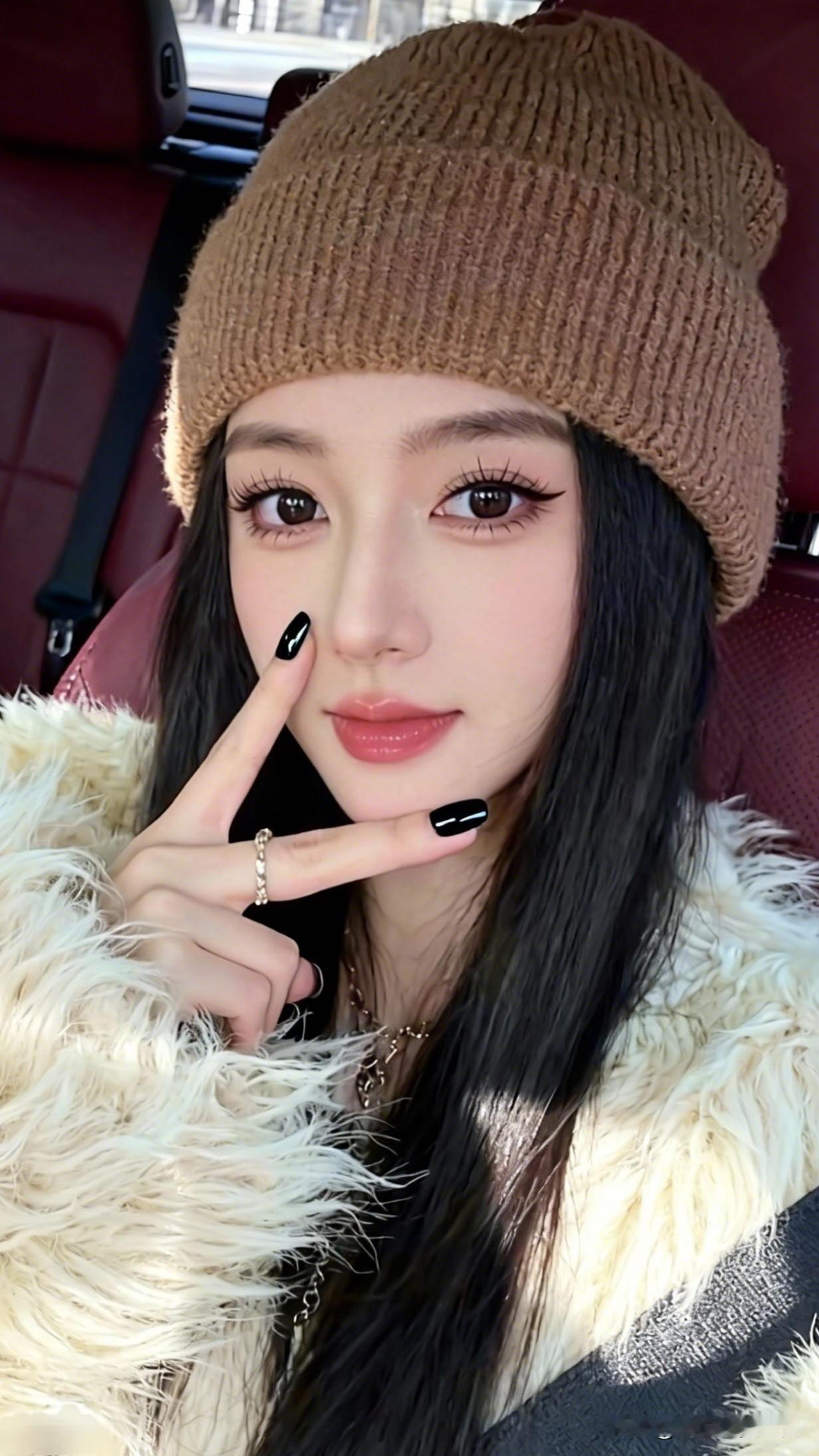 寒冬犹有暖阳在,笑语盈盈意自闲。记录生活美丽的瞬间 冬日暖阳下的甜美自拍,毛绒外套与针织帽的完美搭配
