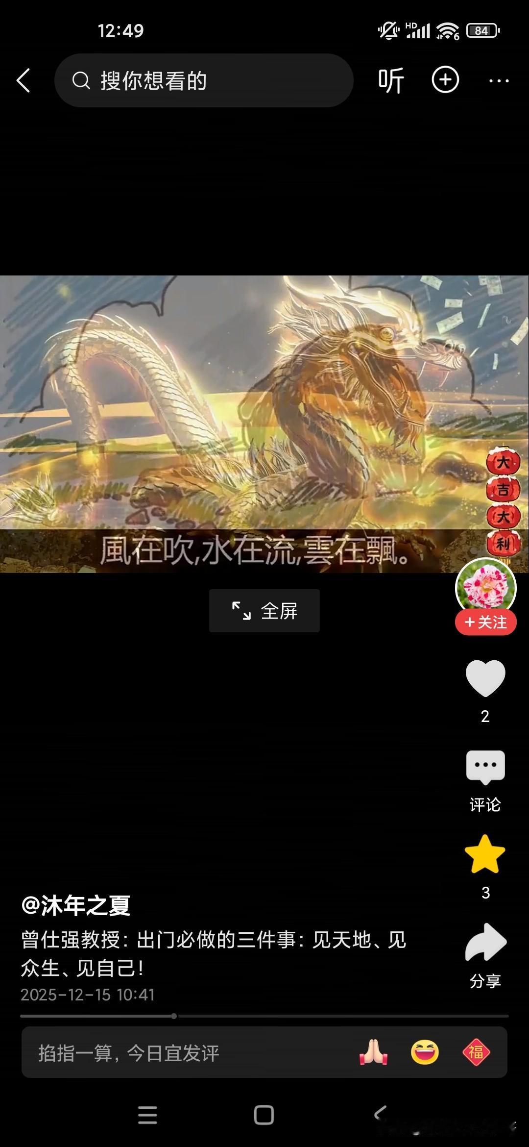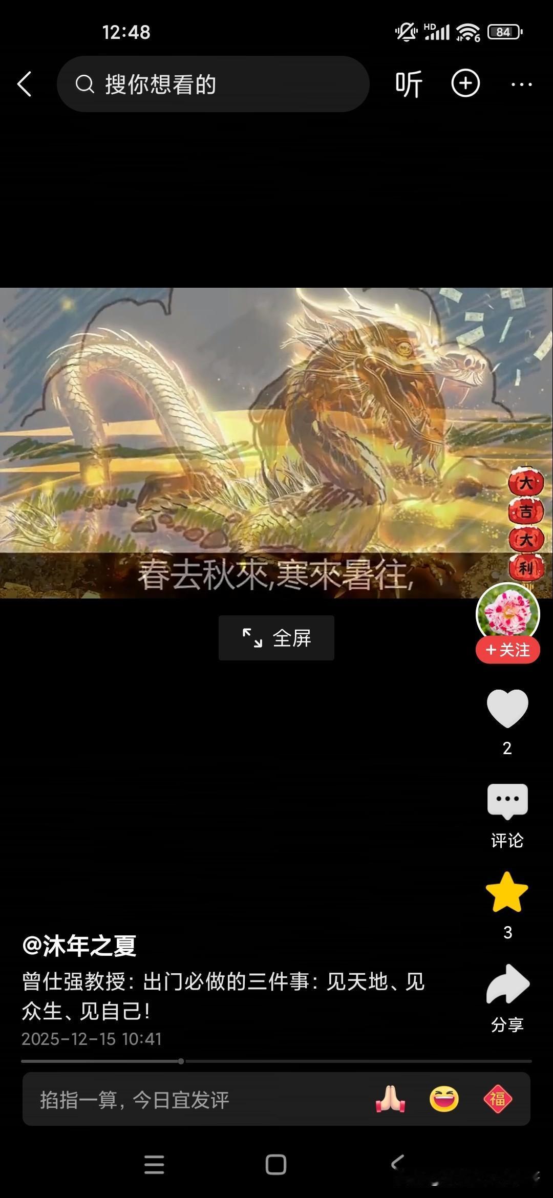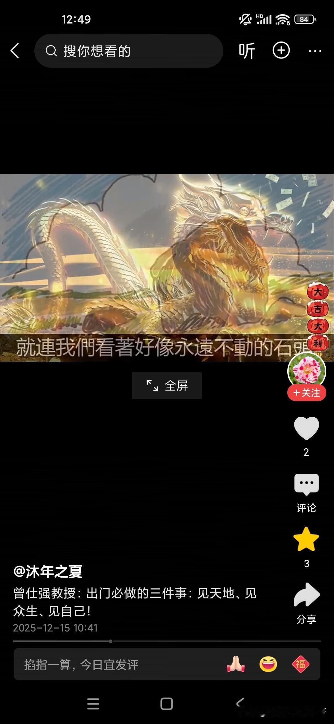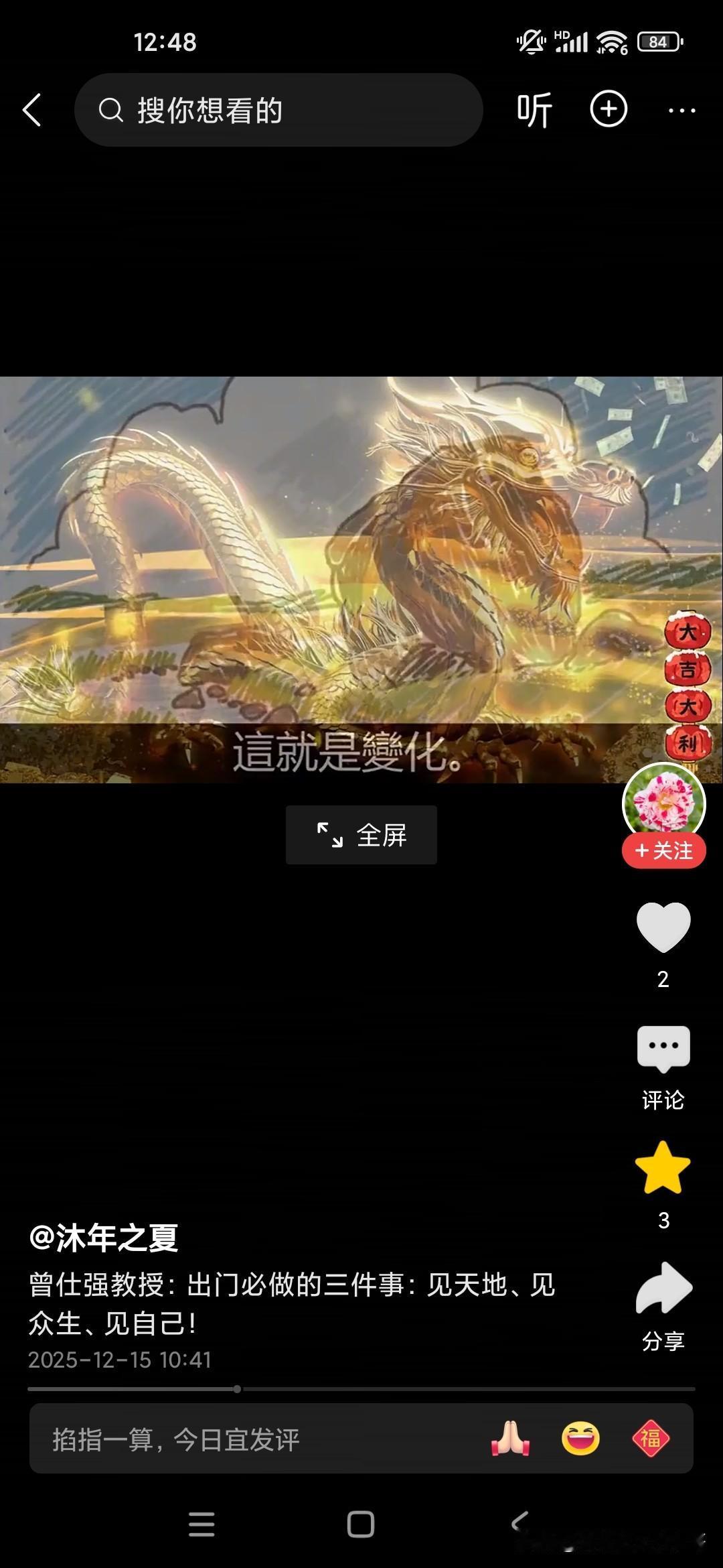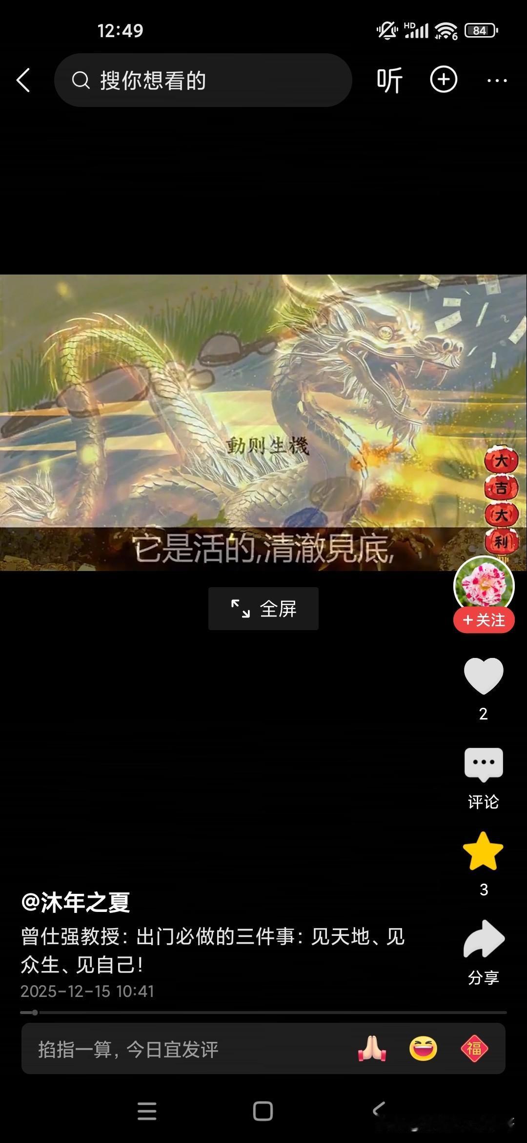 人只有动起来才有活路,我刚才听了曾仕强老师的一个讲座,内心非常受触动,而且我的经历也足以说明他说的是箴言,是真理,因为我从读书时代开始就想出来闯一闯,走一走,从来没有想着在一个地方从一而终,终老到死,我当时从高中考到我们河南的一个二本学院,然后又去了南京,读了研究生,又去了常州,又去了苏州,又来到了上海,我这个人呢就在不断的流动,在不断的寻找机会,也在大脑在接收各种各样的新的信息,然后与人交流啊,沟通,这个运气和运势就这样不断的流动了起来,从那时起我就不安分,然然后我就这样跑来跑去,结果发现自己过的是越来越好,我在常州工作的时候,我爸妈就担心我跳槽的话会不会找不到新工作,会不会没法生存下来,但是后来发现这个过的是越来越好,因此的话,我觉得流水不朽,户枢不蠹,天行健,君子以自强不息,这都是我们老祖宗的智慧呀,千万不要低估了易经的力量。 当然这个出路出路,走出去才有活路,也并不一定说是一定要去多远的地方,哪怕是你去家门口买个菜,和一个门口的保安大叔或者保洁阿姨聊聊天,这都属于沟通和流动,千万不要整天只待在家里,只宅在家里看手机,玩游戏,那样的话,你的思想已经开始腐朽了,你已经开始成为坐井之蛙了,那才是最可怕的!