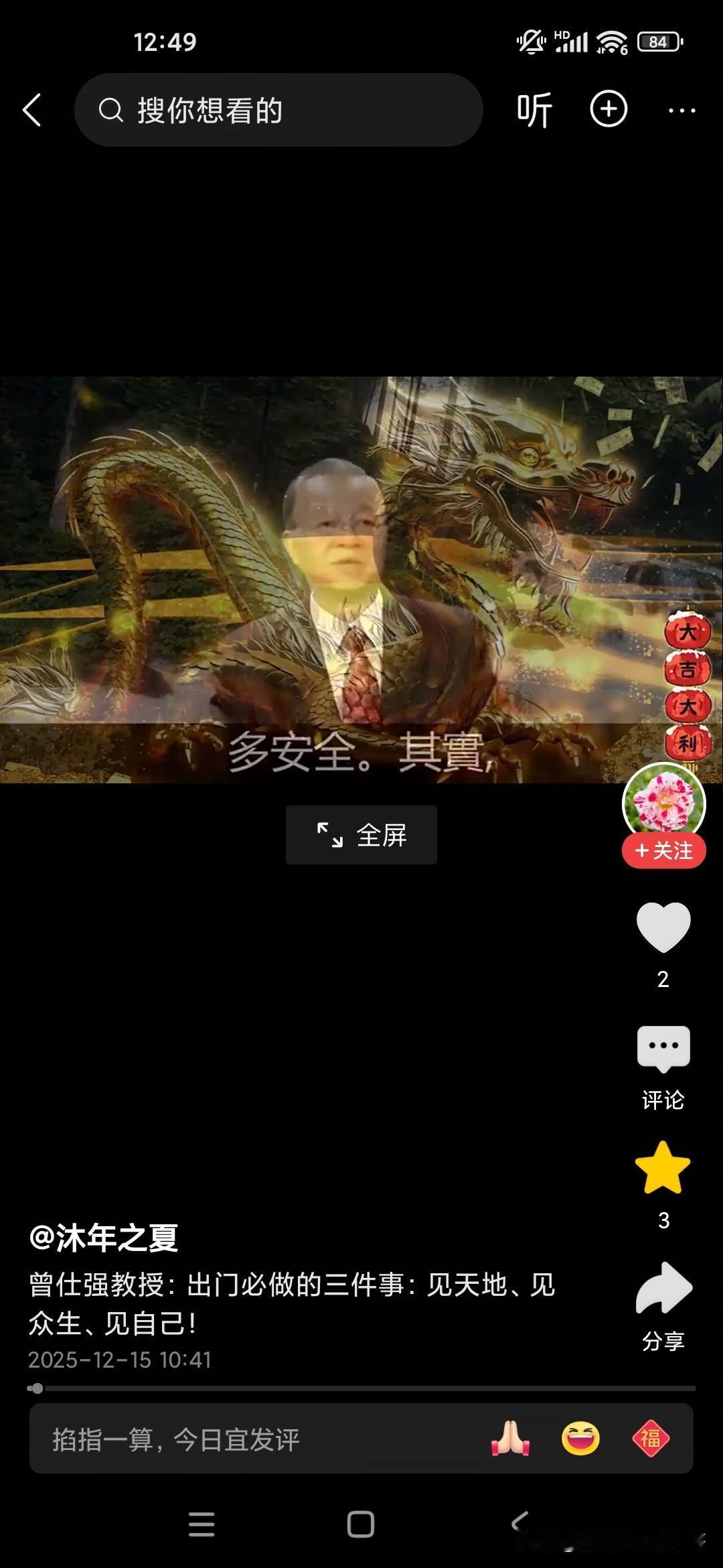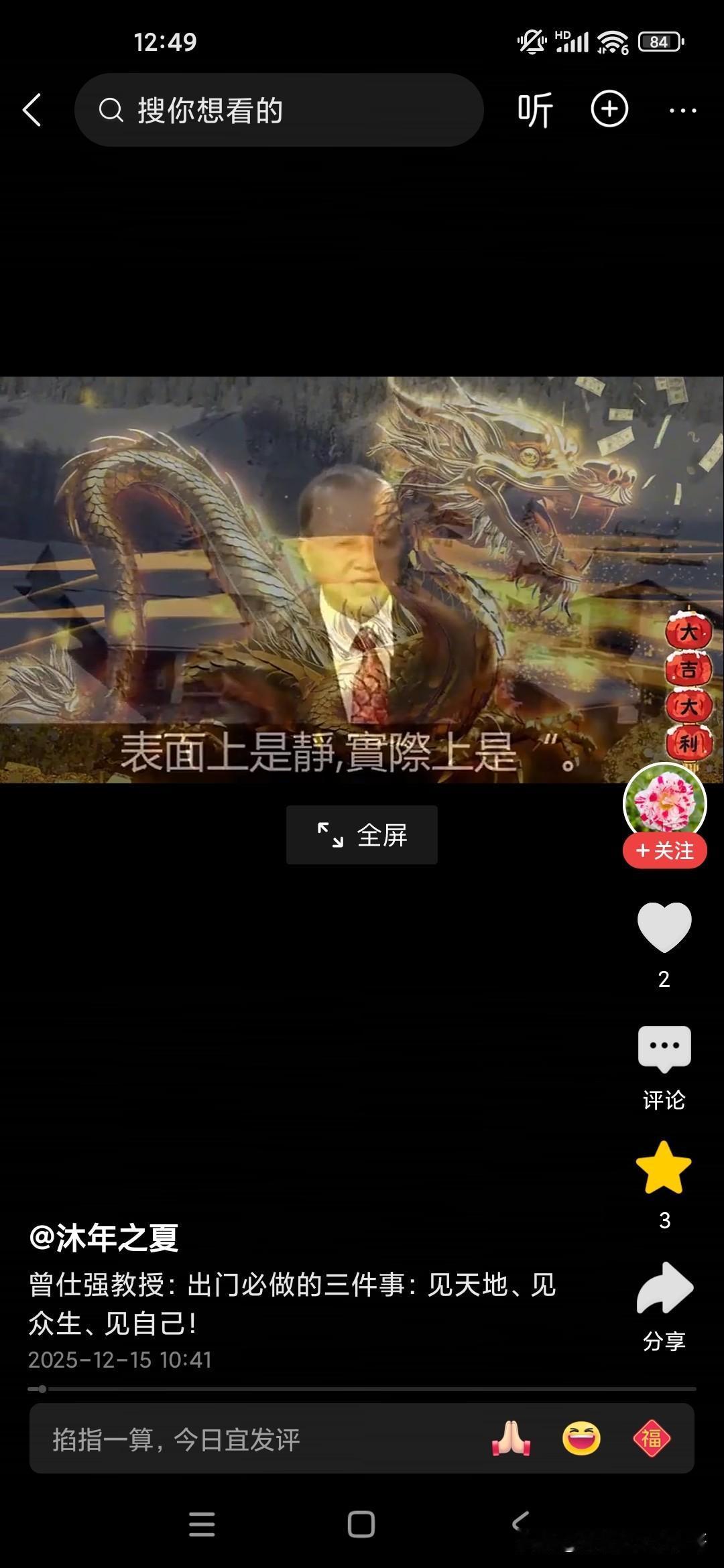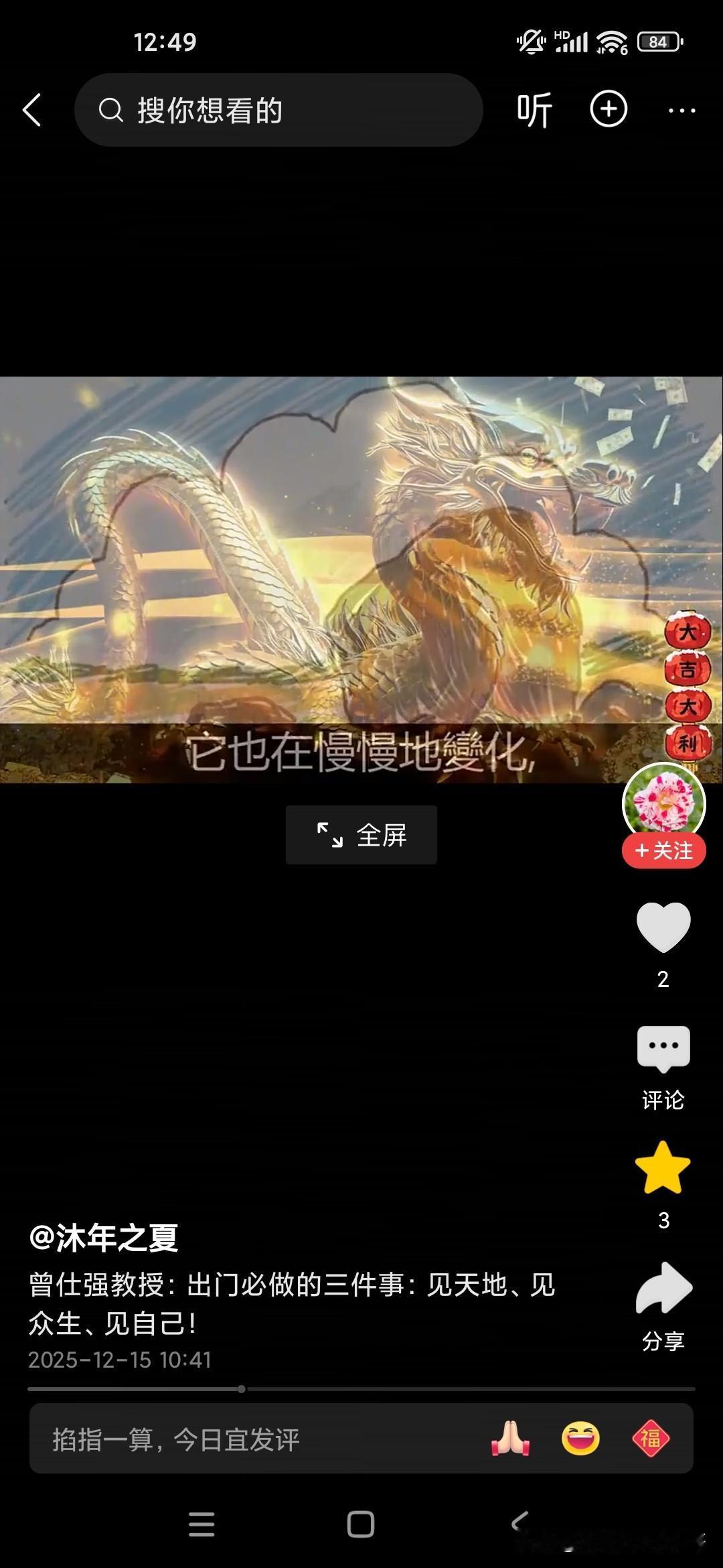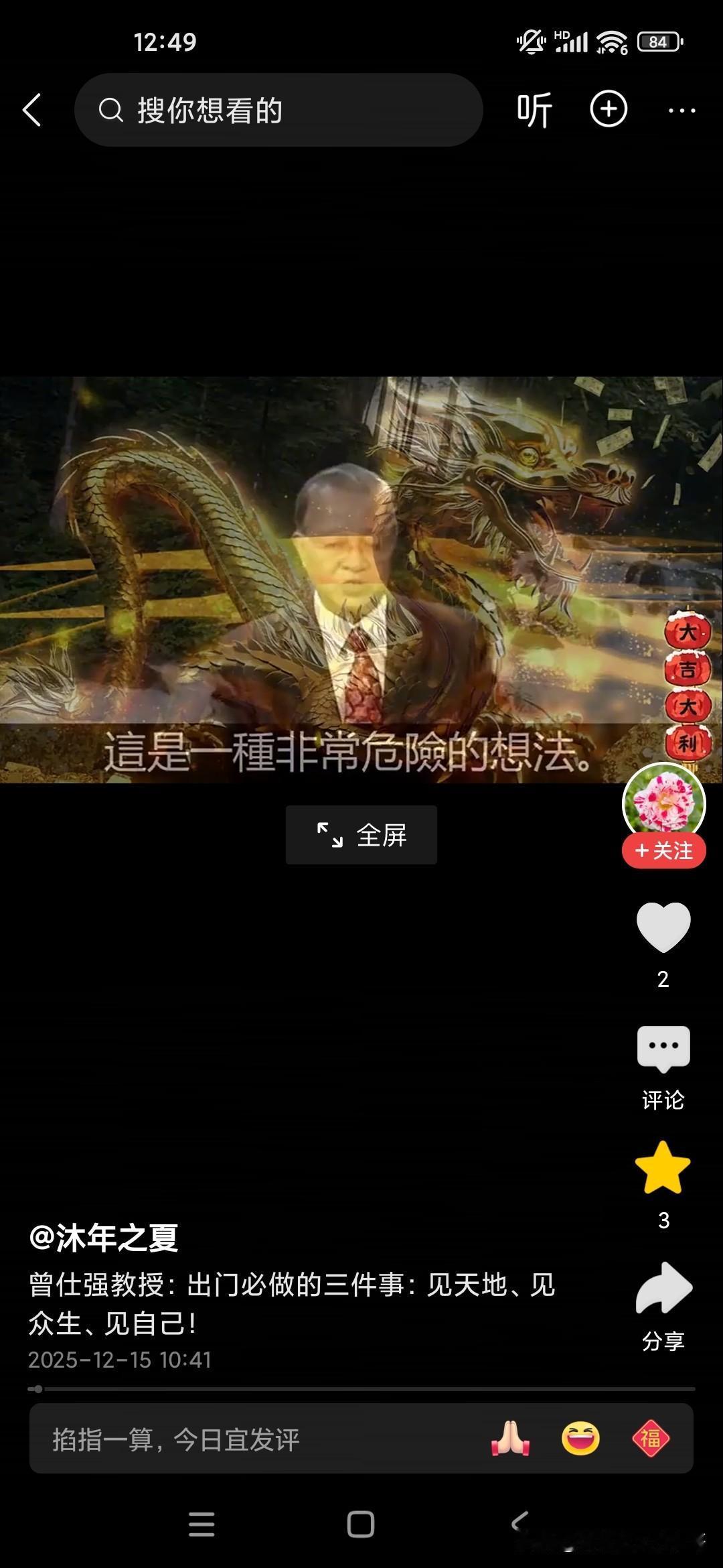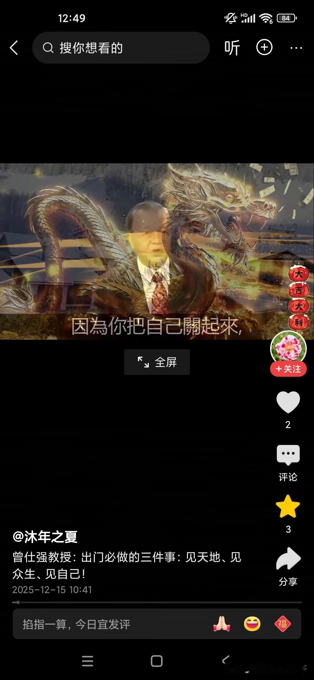 人只有动起来才有活路,我刚才听了曾仕强老师的一个讲座,内心非常受触动,而且我的经历也足以说明他说的是箴言,是真理,因为我从读书时代开始就想出来闯一闯,走一走,从来没有想着在一个地方从一而终,终老到死,我当时从高中考到我们河南的一个二本学院,然后又去了南京,读了研究生,又去了常州,又去了苏州,又来到了上海,我这个人呢就在不断的流动,在不断的寻找机会,也在大脑在接收各种各样的新的信息,然后与人交流啊,沟通,这个运气和运势就这样不断的流动了起来,从那时起我就不安分,然然后我就这样跑来跑去,结果发现自己过的是越来越好,我在常州工作的时候,我爸妈就担心我跳槽的话会不会找不到新工作,会不会没法生存下来,但是后来发现这个过的是越来越好,因此的话,我觉得流水不朽,户枢不蠹,天行健,君子以自强不息,这都是我们老祖宗的智慧呀,千万不要低估了易经的力量。 当然这个出路出路,走出去才有活路,也并不一定说是一定要去多远的地方,哪怕是你去家门口买个菜,和一个门口的保安大叔或者保洁阿姨聊聊天,这都属于沟通和流动,千万不要整天只待在家里,只宅在家里看手机,玩游戏,那样的话,你的思想已经开始腐朽了,你已经开始成为坐井之蛙了,那才是最可怕的!