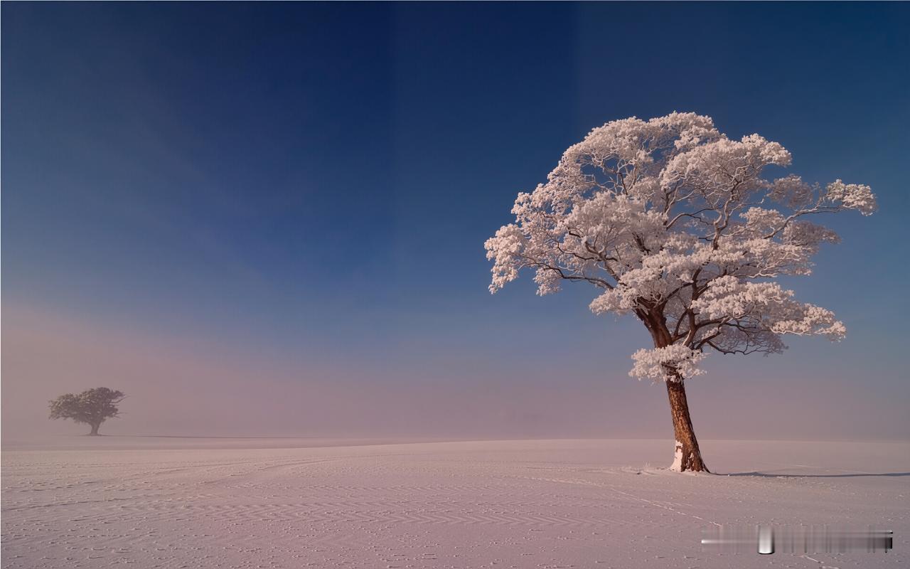 分享一张治愈系风景吧树上挂满了雪,蓝天映衬着雾凇,真好看。