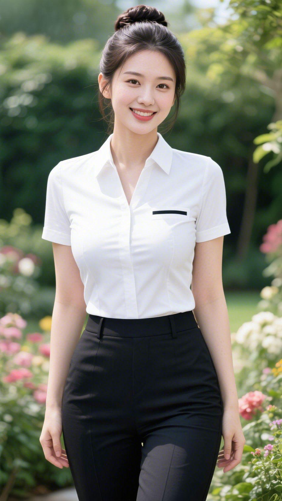 《晴光里的舒展》 夏末的风裹着草木的清芬,掠过身侧时,白衬衫的衣角轻扬。我站在盛放的花丛旁,衬衫的纹路里浸着晴日的暖意,像把晒透的光柔缓地裹在身上。 发丝被风轻轻撩起的瞬间,远云揉作蓬松的软团,连呼吸都沾着清甜。黑裤的褶皱落了星点光斑,像悄悄收了半捧夏的明亮。舒展从不必刻意——是衣角轻晃的自在,是花茎微颤的轻和,是风路过时,时光都慢了半拍。 这片刻的从容,是季节递来的短笺,写着“此刻恰好”。无需奔赴什么,站在这里,便成了晴光里最舒展的模样。 职场轻松弛 夏末小确幸