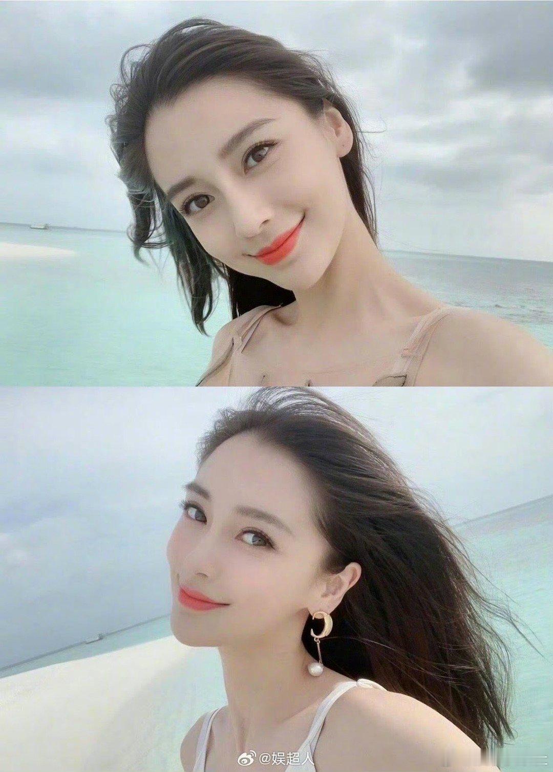 刘亦菲十七八岁时在海边游玩留下的一组照片,肚子上好多肉肉啊!