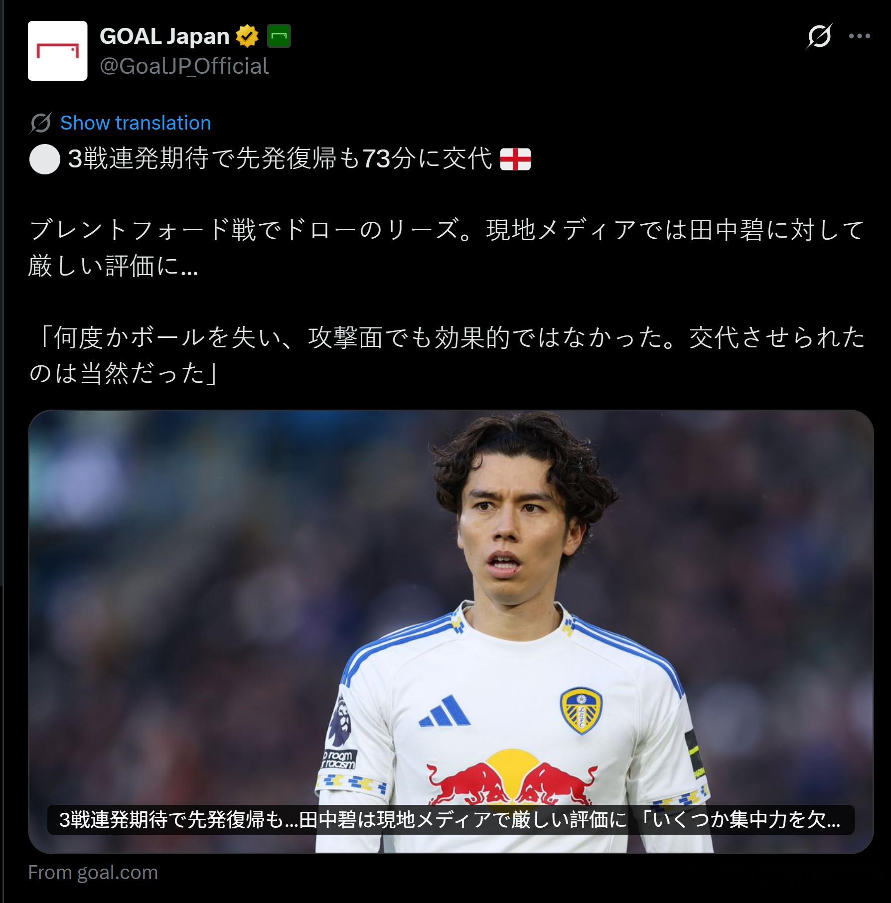 田中碧的问题与久保建英一样,无法坚持连续打三场高强度比赛,这在上一届世界杯赛中就表现出来了。这两人必须要有轮换安排,不能连续打满全场比赛,但可以让他们每次替补登场,发挥各自特点。丢球,注意力不集中,无球跑动不好…这些都是体能问题的具体表现。但主教练如果扛不住媒体和球迷的吹捧,连续让他们打首发,只能再次面临媒体和球迷的批评。