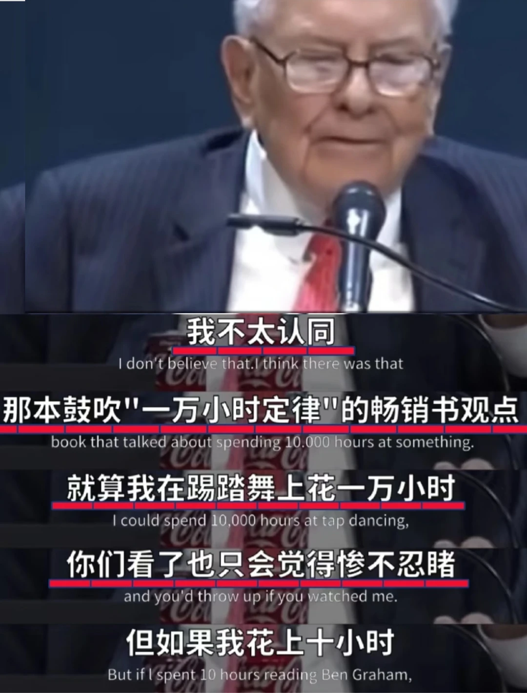 [向右R]巴菲特却不太认同那本鼓吹“一万小时定律”的畅销书的观点,他说:
