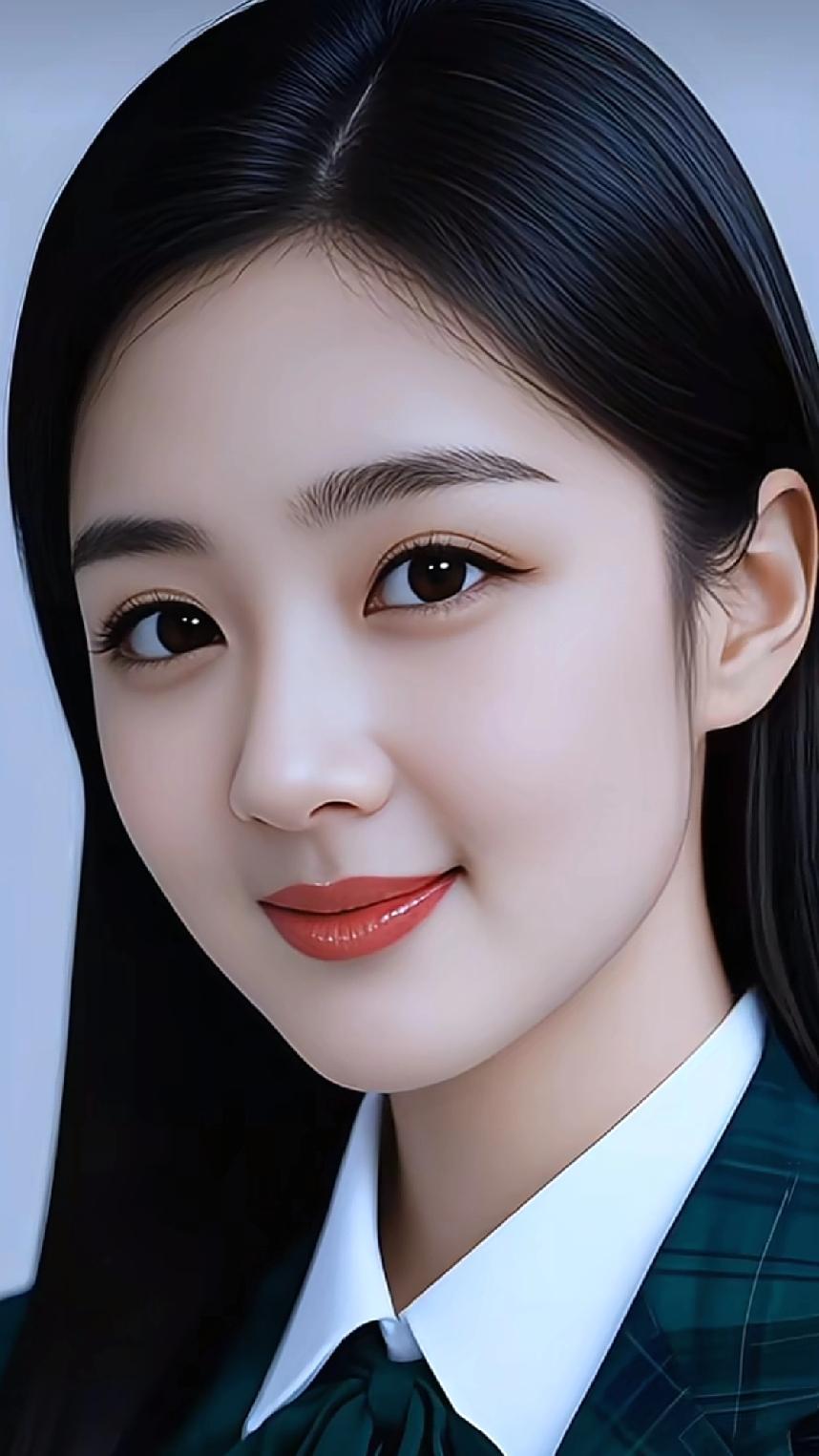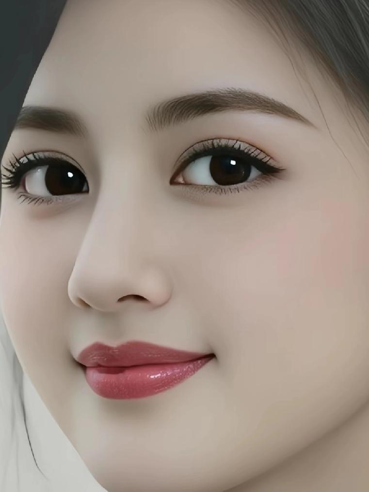 温柔眼波,甜美红唇,自然妆容,清新自然。