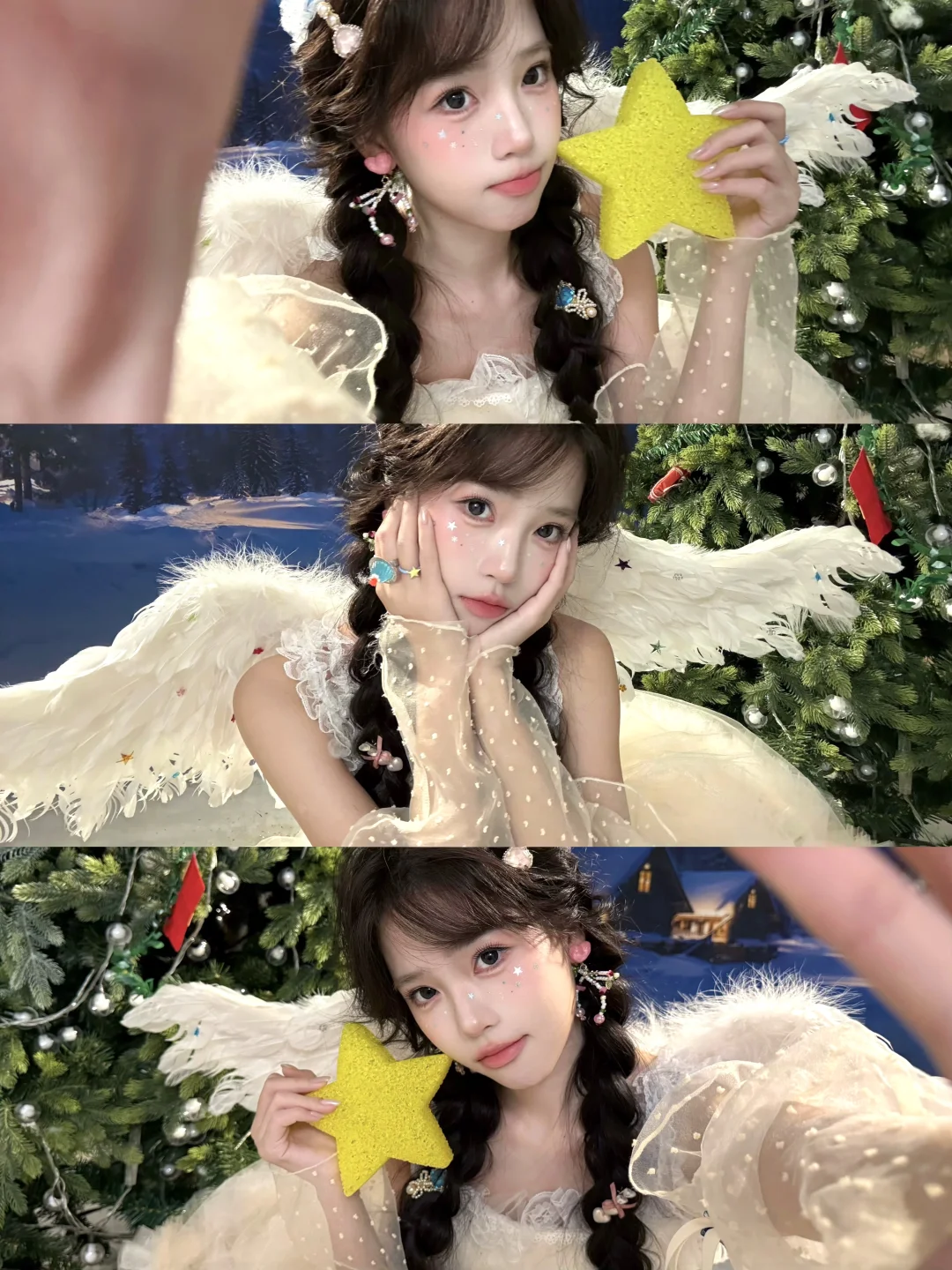 贩卖圣诞气息‹‹🎅🏻💫🍒 提前预制圣诞写真啦~ 好喜欢这个海马体圣诞照「摘星精灵」 - 发型我选了双麻花的辫子 感觉这个和蓝色皇冠搭一些嘿嘿~ 脸颊的蓝色星片深得我心 他们妆容都是会根据每个人的五官调整的 所以不用担心会不合适自己! - 摄影老师也非常会找拍摄角度 有些不太好摆的姿势他也会很耐心的帮我调整~ 社恐也能轻松拿捏灵动姿态!! - 这个圣诞 做闯入星夜的精灵🧚 把浪漫与星光都藏进写真里 让2025的年末满是闪耀回忆~