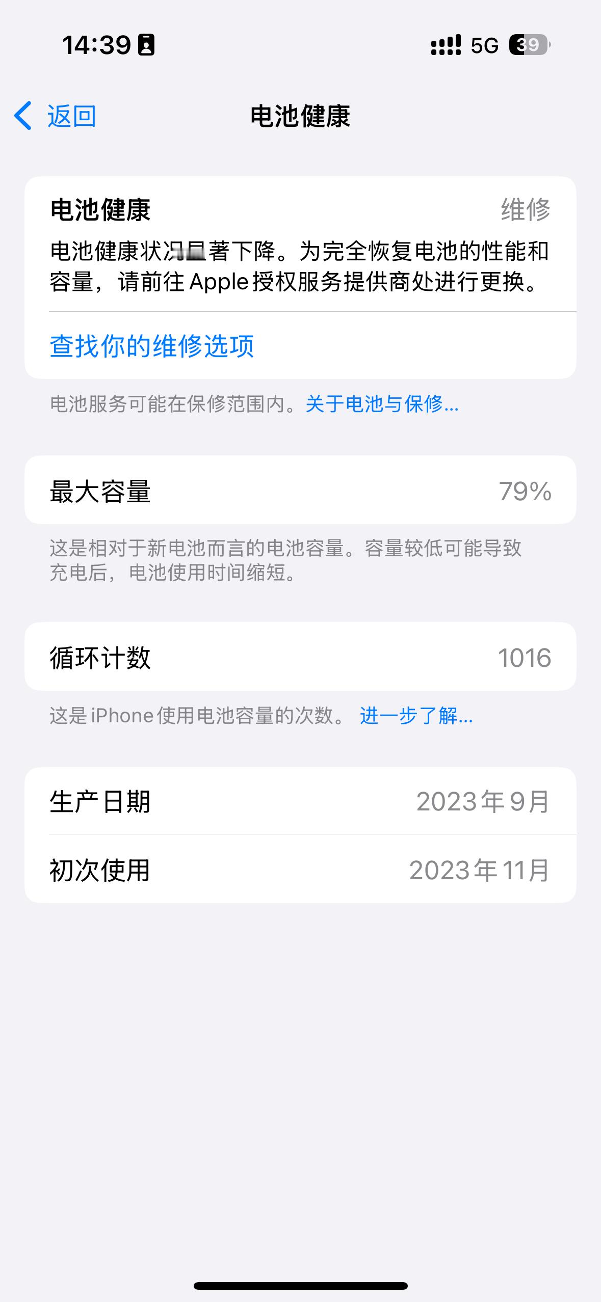 iPhone 15 Pro的电池终于在AC+有效期里掉到了80%以下,只有1000来个循环,已经不太能用了,充电的时候也发热明显。天才吧换完新电池,浑身都舒服了。