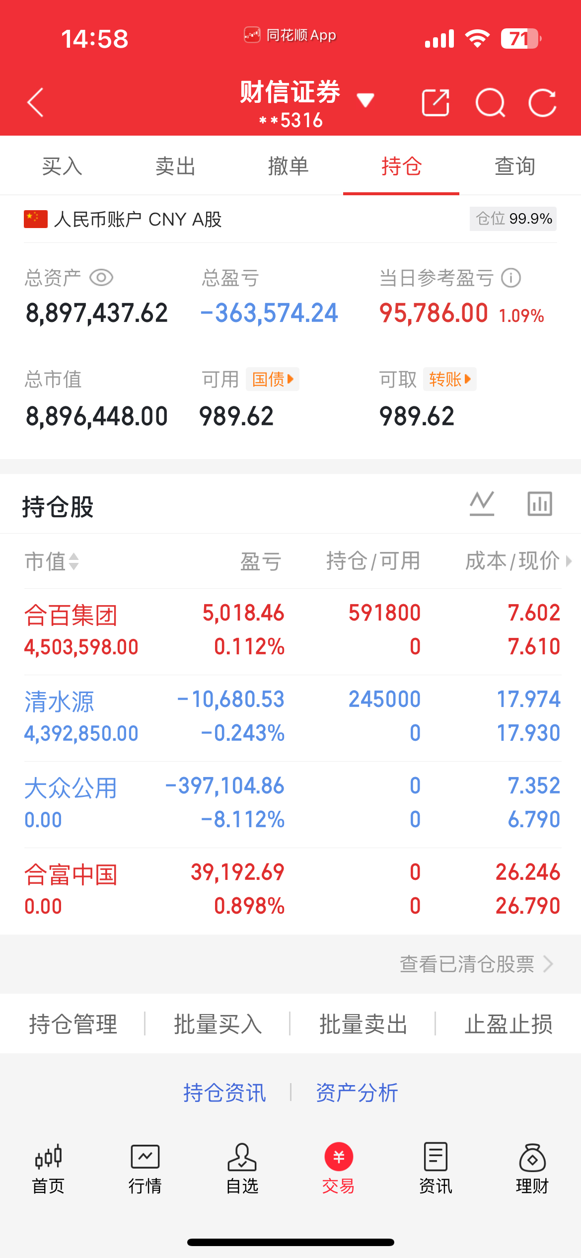 今天是12月12号星期五!菲菲股票操作之旅;今日卖出:合富中国,大众公用今日买入:合百集团,清水源特别声明:我开实盘的目的主要是为了记录我对A股走势的思考和研判,并用于记录我自己的操作笔记,是我积累股票投资知识和反省操作失误的一个平台,绝不是读者朋友买卖股票的依据和理由,不具备投资建议,据此操作,需自行承担投资后果,股市有风险,投资需谨慎!!!看到的朋友点个赞,扣一波“888”支持菲菲,我会每天坚持发出自己的操作来!兄弟们,点赞富三代,评论美一生!