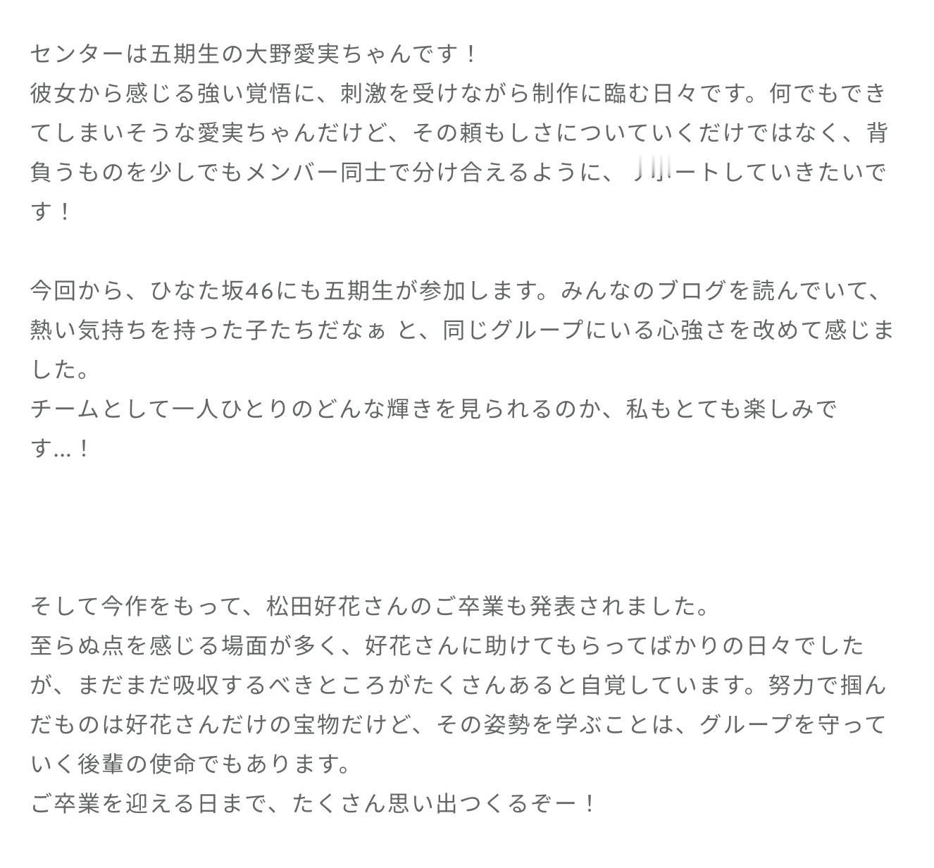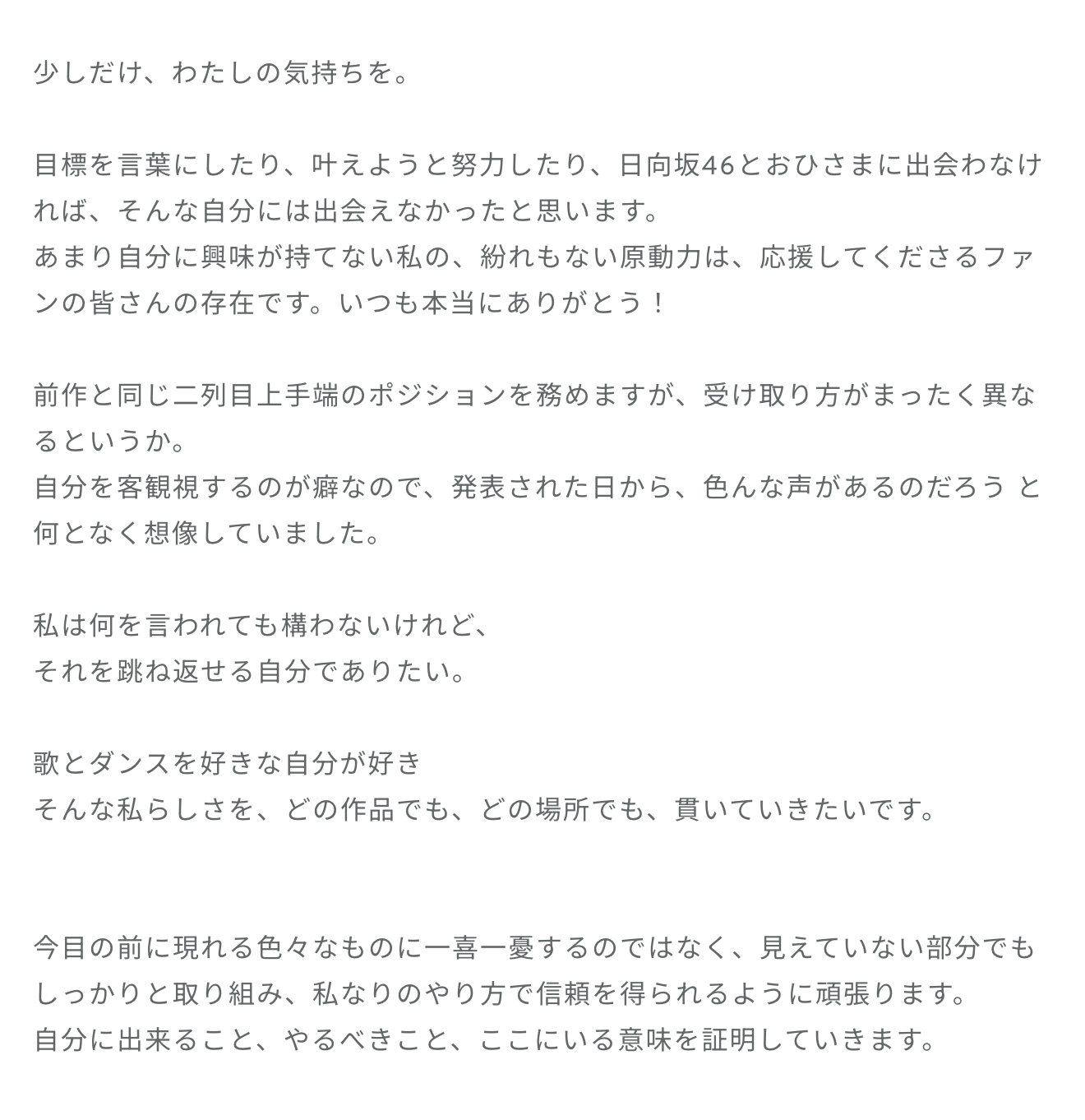 みくにん「16枚目シングル「クリフハンガー」のフォーメーション発表があり、今回私は表題曲のメンバーとして活動させていただきます!ツアーと共に駆け抜けた15枚目シングル期間、たくさん支えていただきありがとうございました!作品を制作するということ。つい当たり前にあるものと思われてしまいがちですが、決して当たり前ではありません。グループが置かれている環境、関わってくださる人すべてに、感謝しています。」