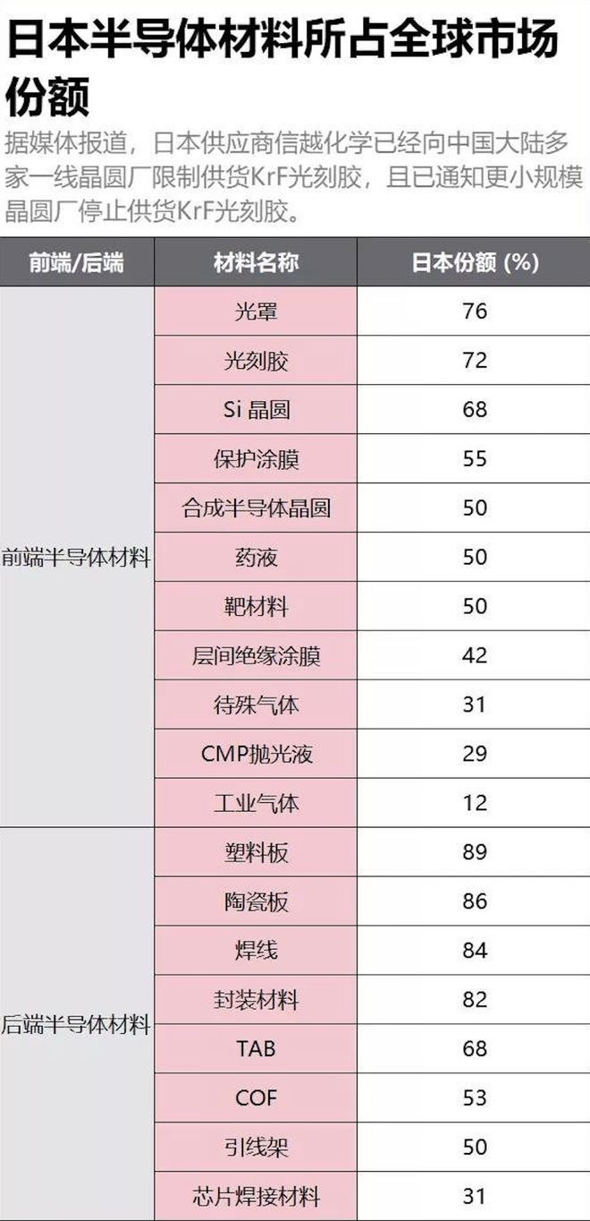 中国连美国都不怕, 还怕你日本?据俄罗斯卫星通讯社报道,日本佳能、尼康、三菱化学等知名企业已经接到通知,预计将在2025年12月中旬后全面停止向中国出口光刻胶!可能大家不知道,光刻胶有多重要?哪怕没有最先进的EUV光刻机,使用DUV光刻机也行,再不济使用二手光刻机都行。但是没有光刻胶的话就惨了,不管你是什么光刻机,都工作不了。而且光刻胶的保质期就几个月。想靠囤货根本不行,最后都烂到家里了。更可怕的是,全球光刻胶市场,90%以上的份额都被日本垄断,老美都得依赖它。光刻胶这东西简单点说,是将掩膜版上的精细电路图,通过曝光转移到硅片上。在芯片制造的整个流程中,光刻工艺占用了40%-50%的时间。每一次“画电路”前,都必须要在硅片表面,均匀涂抹一层光刻胶。就算有非常牛X的EUV光刻机,没有相应的光刻胶,最后精度也达不到要求。韩国三星集团CEO就曾表示:“如果光刻机缺少了光刻胶,那么光刻机就是一堆废铁。”光刻胶根据曝光波长不同,分为g线、i线、KrF、ArF和EUV五代。制程越先进,波长越短,技术难度呈指数级上升。而在高端光刻胶方面,目前主要是日本公司垄断。比如日本东京应化,JSR,住友化学,信越化学等企业,掌握了全球半导体光刻胶市场的90%左右份额。在半导体材料方面,前段工序常用的材料一共19种。其中14种都由日本企业主导。不同制程的光刻机,对应着不同波长的光线,就得使用不同种类的光刻胶。据2024年中国光刻胶市场规模数据显示,国产化率不足5%,即绝大部分依赖进口,进口部分日本占比超过一半。2023年中国从日本进口感光化学品(光刻胶为主)占比约50–54%。2024年全球光刻胶市场规模108亿美元,其中半导体光刻胶市场规模约24亿美元,预计2025年市场规模持续增长达到114亿美元。那日本断供我们光刻胶,影响有多大?论复杂性,光刻胶肯定是比不上光刻机的,中国当然也能造。此前就有公开资料显示,在中端KrF光刻胶领域,国产化率正在飞速提升,预计2025年可达35%以上。在使用国产光刻胶的情况下,南大光电等企业也已实现28nm制程量产,芯片良率不输于日本光刻胶。至于ArF光刻胶,也有小批量验证通过,部分进入头部晶圆厂供应链。中国计划2026年国产化率达40%,国家大基金第二期优先支持光刻胶等关键材料,头部晶圆厂也主动验证国产替代。多家企业,比如容大感光、晶瑞电材、彤程新材等已实现从树脂到成品的全链条自主,成本较进口低15%-20%。虽然目前EUV光刻胶国内暂时处于空白,但至少能满足绝大部分芯片需求。再者,如果日本敢做初一,中国绝对有能力做十五。因为日本光刻胶的原材料非常依赖中国。光刻胶的生产和储存,以及半导体硅片的提炼,都离不开高纯度石英砂。而中国掌握了全球62%的高纯石英砂供应。没有中国的石英砂,日本连盛放光刻胶的特种玻璃瓶都造不出来,更别提硅片生产用的石英坩埚了。同时,日本芯片产业中也高度依赖从中国进口的电子级氢氟酸、光引发剂中间体等原料。而特种氟化物,中国占全球48%,光引发剂中间体,中国占全球55%。至于镓,锗,还要说么?一旦中国切断上游原材料供应,日本的光刻胶乃至整个半导体材料产业将面临“巧妇难为无米之炊”的绝境。中国不怕美国封锁,更不会畏惧日本施压。你断我的粮,我就断你的根。日本要是真动手,怕的不是中国反击,而是怕他自己先断气。热点观点烽火问鼎计划