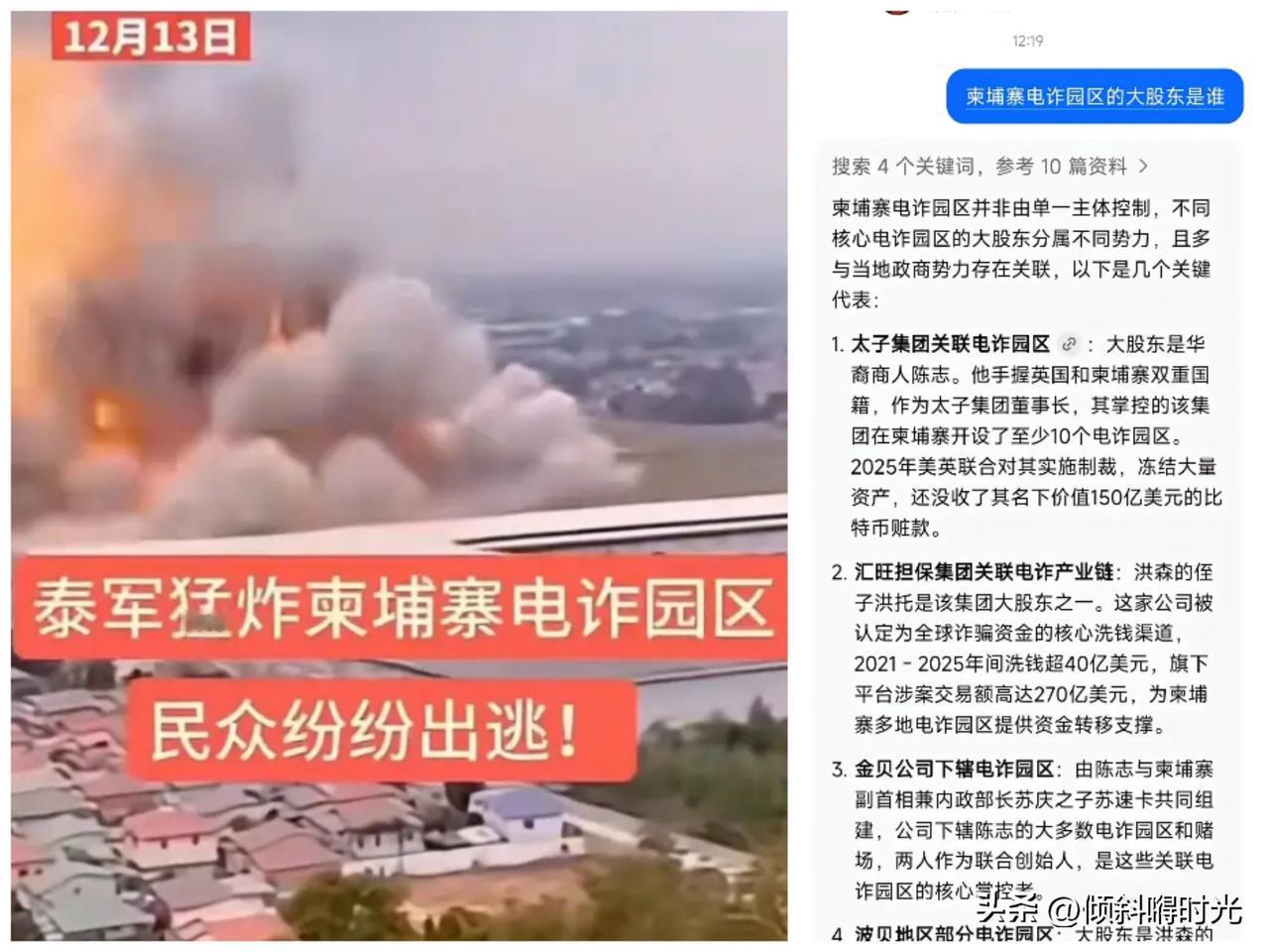 你们发现没有,到目前为止,除了美国总统特朗普,还有东盟轮值主席国马来西亚总理安瓦尔呼吁泰柬恢复和平,尽早结束战争外,其他各国没有对此事进行批评或者强烈抗议,因为泰国明面打的就是柬埔寨电诈园区,以及跨国犯罪基地,这可以说是全世界各国都是比较痛恨的,怪不得美国总统特朗普虽然表示调停了冲突,但是泰国并没有停手,大有越演越烈之势,还有一点就是洪森泄露泰国前总理佩通坦通话内容,导致了佩通坦的解职,可以说妥妥的小人,这种人真应该好好给予教训。