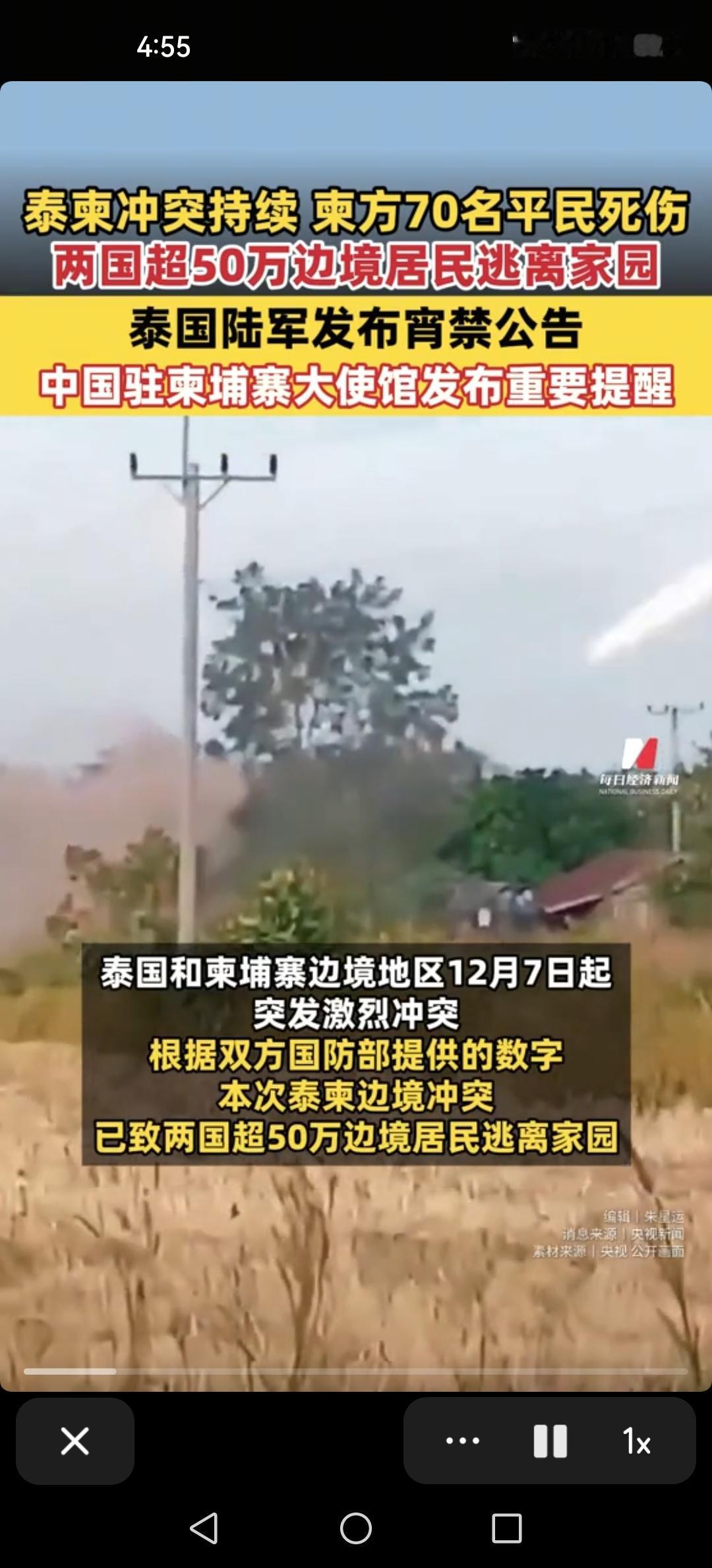 第四日:交战持续 双方超50万边境居民撤离,泰国军方称派出F-16战机空袭柬军事