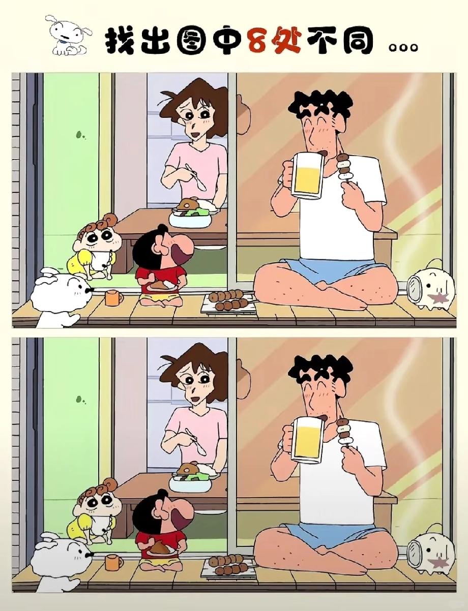 蜡笔小新找不同太绝了!8处不同藏得超隐蔽,你能找出几个?