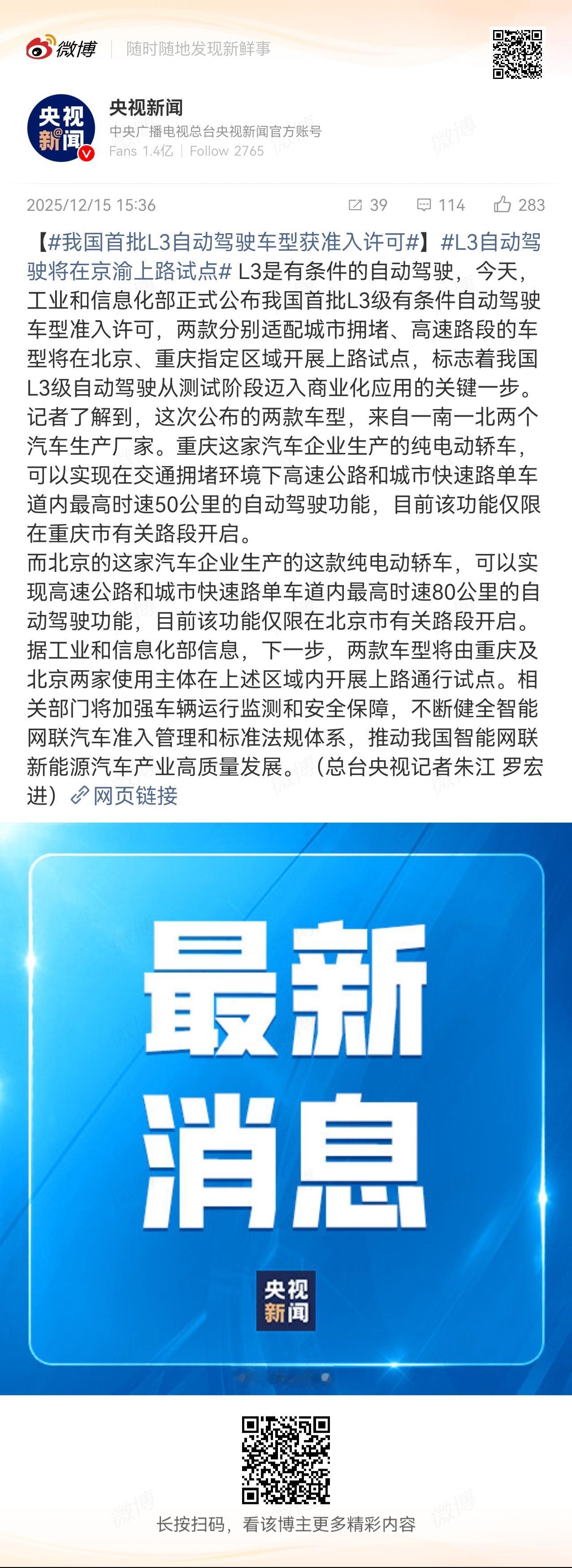 见证历史,L3时代来了,注意看官方说的是L3级自动驾驶,而不是辅助驾驶,首批企业