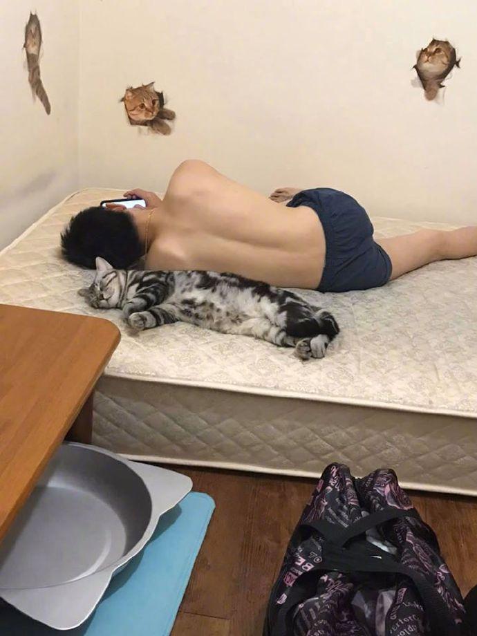 主人为了证明家里猫的脚力有多大,于是发了这几张照片,被踹到肯定非死即伤啊!