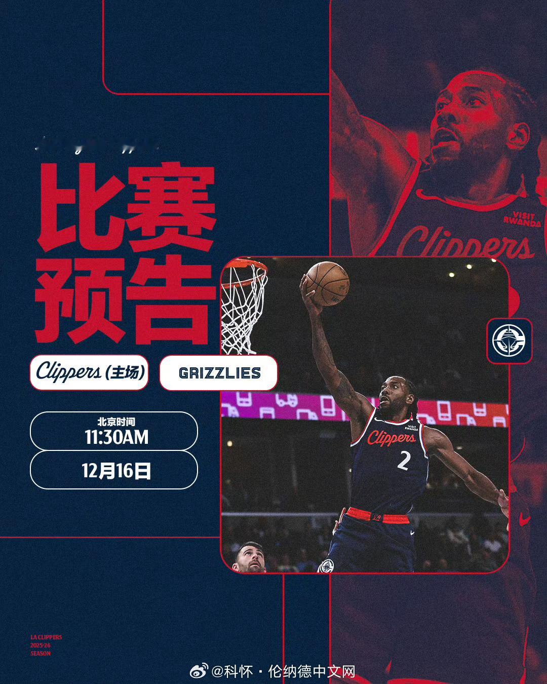 比赛预告:明日上午十一点半,快船主场迎战灰熊!伤病报告:巴图姆(生病)与哈登(