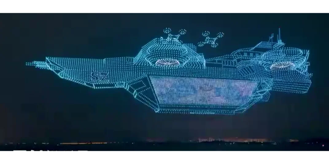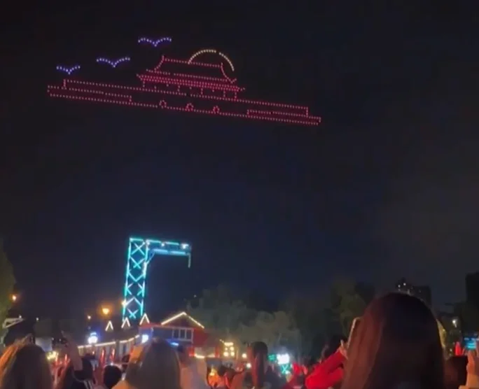 超万架无人机如同一个个训练有素的演员,以天空为舞台,以夜色为幕,走位灵活,卡点准确。科技与艺术的结合带来了极具震撼的效果。