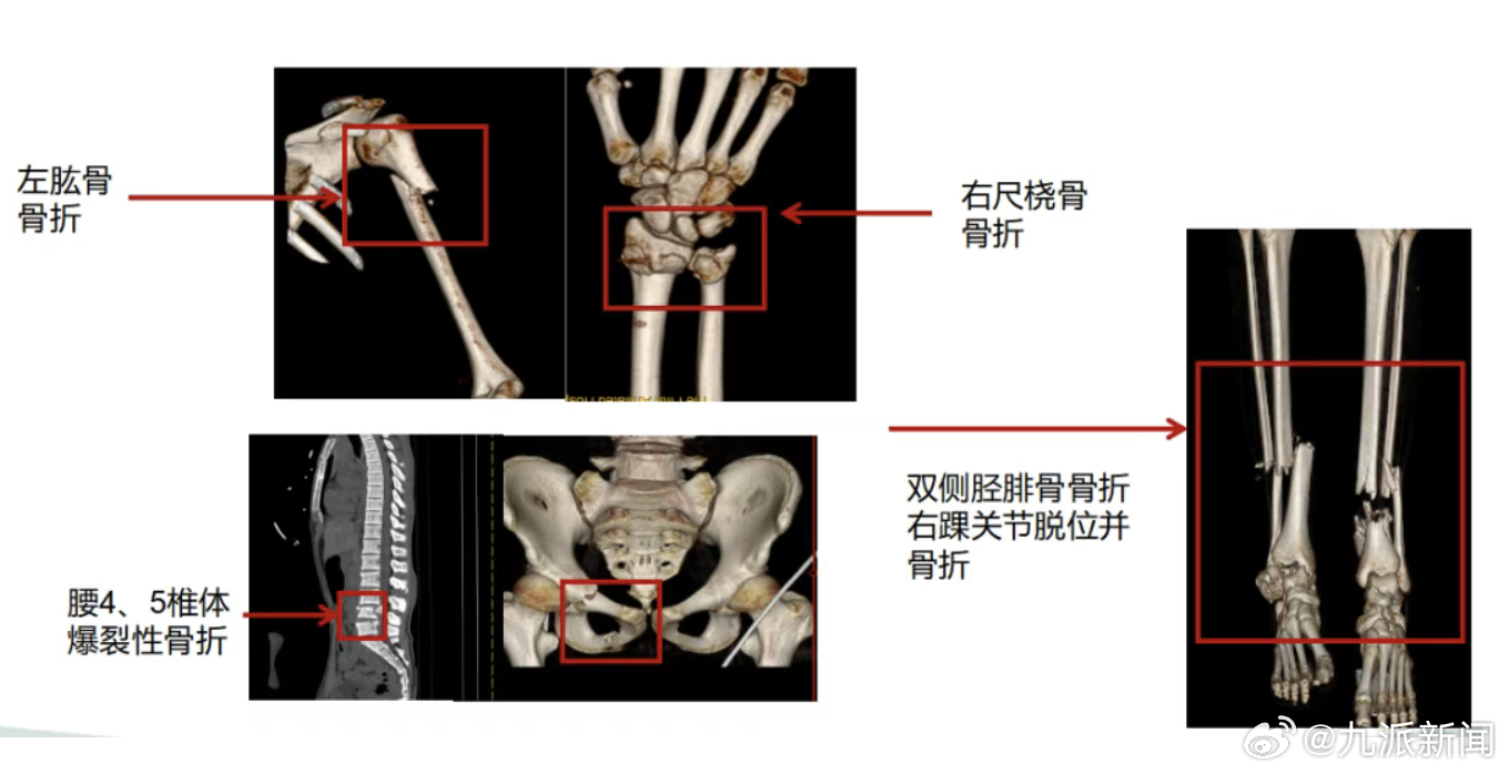 【#男子5楼坠落严重休克奇迹生还#】12月15日,从遵义医科大学第五附属医院获悉:近日,广东珠海斗门一名男子因意外从5楼坠落,被紧急送往遵义五院。救护车抵达时,急诊医生发现伤者浑身是血,多处骨折,右腕及双小腿畸形,呼吸微弱、皮肤苍白,送医时已严重休克。时间紧迫,鉴于伤者高空坠落、多处重伤,医院立即启动创伤中心最高级别响应。专家结合影像科医师初步研判结果指出:“下唇贯通伤、下颌部裂伤,需即刻清创缝合;肠系膜破裂,需紧急行腹腔探查术;双侧胫腓骨、右距骨、右踝关节开放性骨折,优先行损伤控制手术。”多学科专家团队依据实时影像数据,迅速完成伤情研判,确定核心抢救方案:立即实施损伤控制手术,先止血救命,待患者生命体征平稳后,再行分期手术治疗。手术室内,血液回输机高速运转,急救药品整齐排列,各类手术器械摆放有序。有人专注处理腹部止血,精准控制出血点;有人迅速开展骨折临时固定,避免二次损伤;有人紧盯监护仪,全力维持患者生命体征……整套操作行云流水。耗时约2小时,首次损伤控制手术顺利完成,患者被平稳送入重症监护室。此时患者生命体征已趋于平稳,为后续治疗奠定了坚实基础。待病情进一步稳定后,骨一科、骨二科专家先后为其开展四肢骨折修复手术及脊柱手术,康复治疗也同步介入,形成了“抢救-治疗-康复”的完整诊疗闭环。