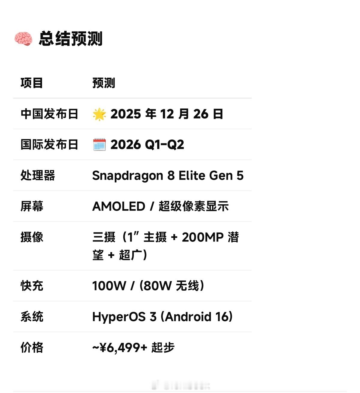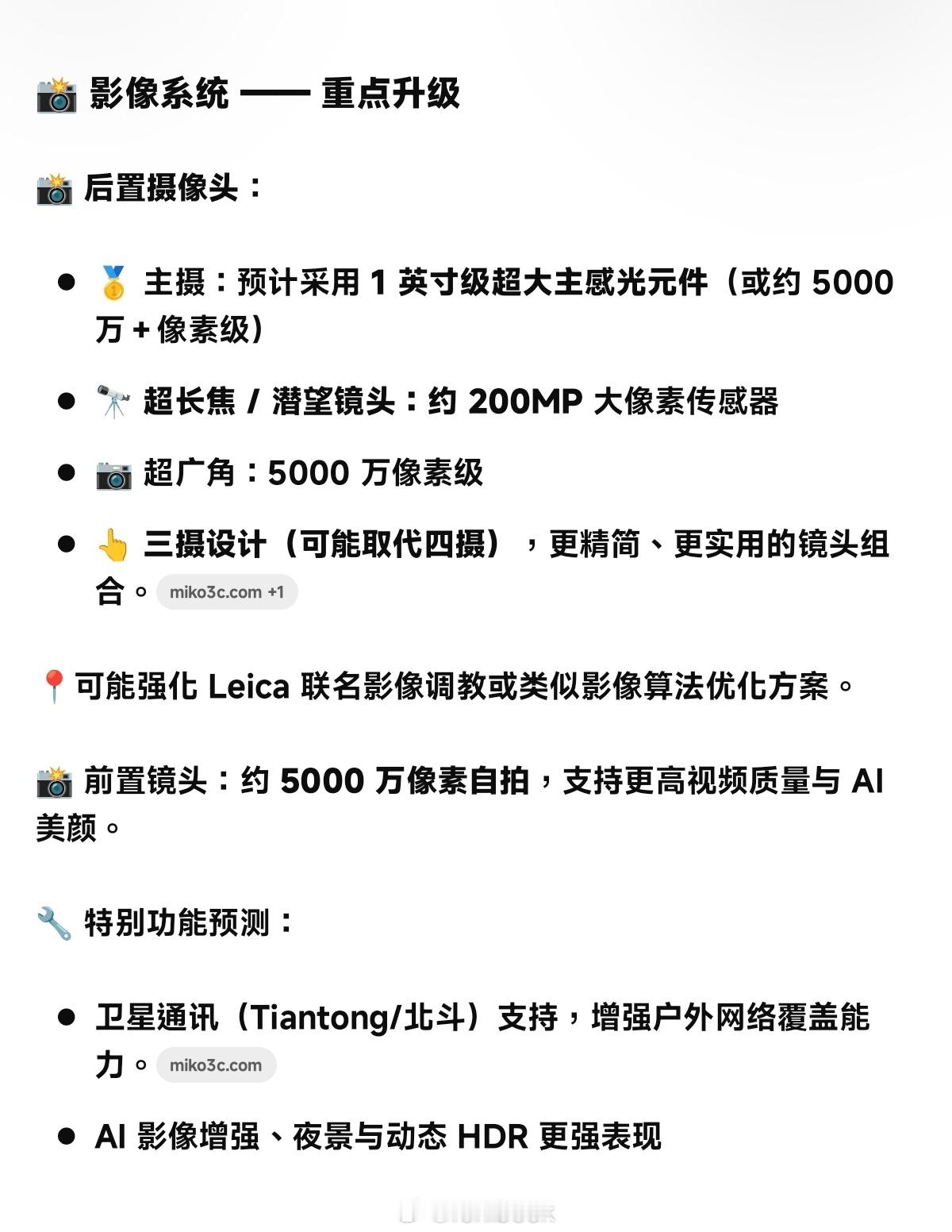小米17Ultra保密措施做的太严了其实也没有很严,网上已经曝光的差不多了,我让AI预测了下发布日期,AI大概率12月26日,我查了下是周五,不可能,小米发布会一般都是周四不过配置预测应该八九不离十了,坐等发布,我猜春节前发布