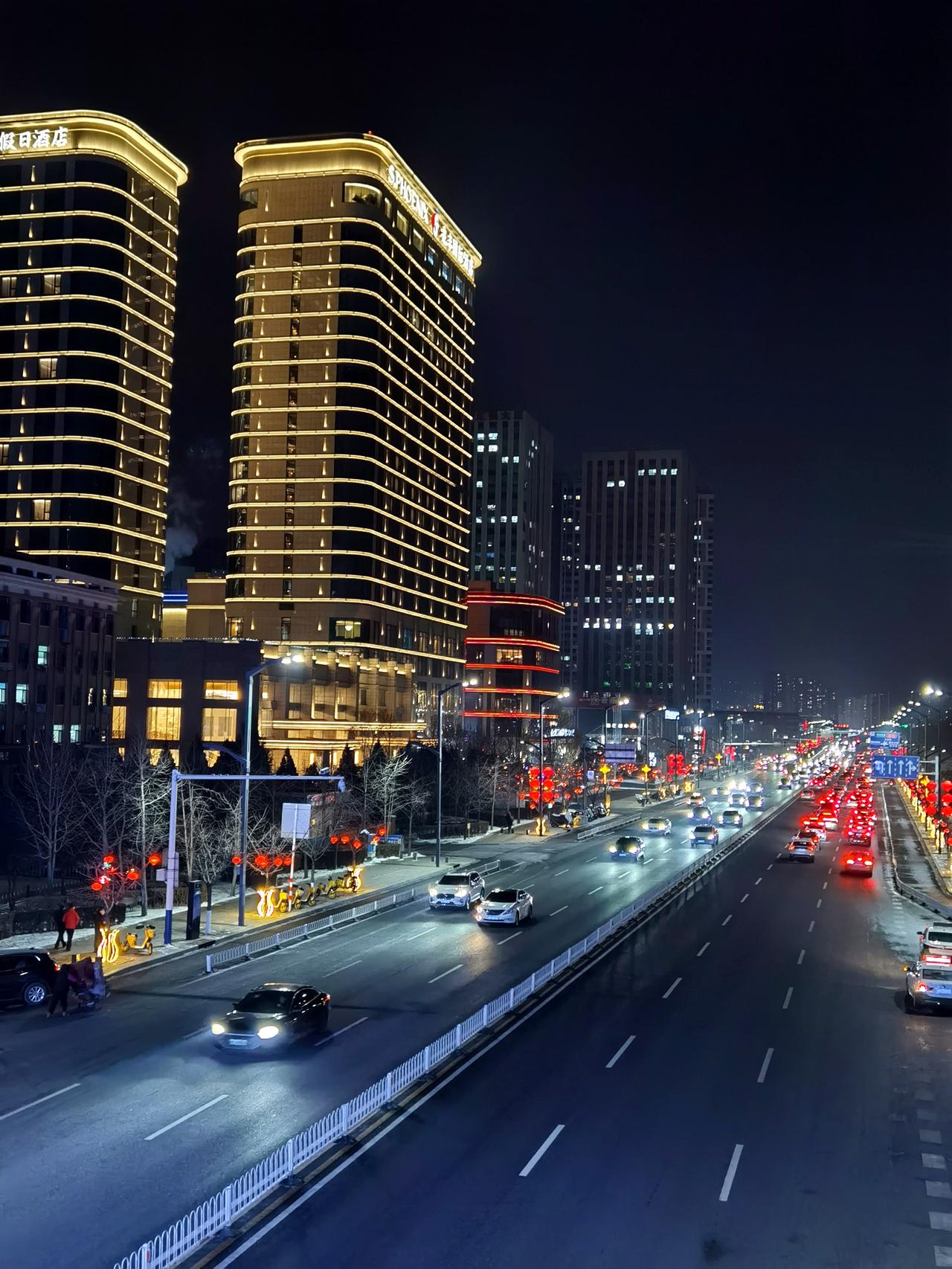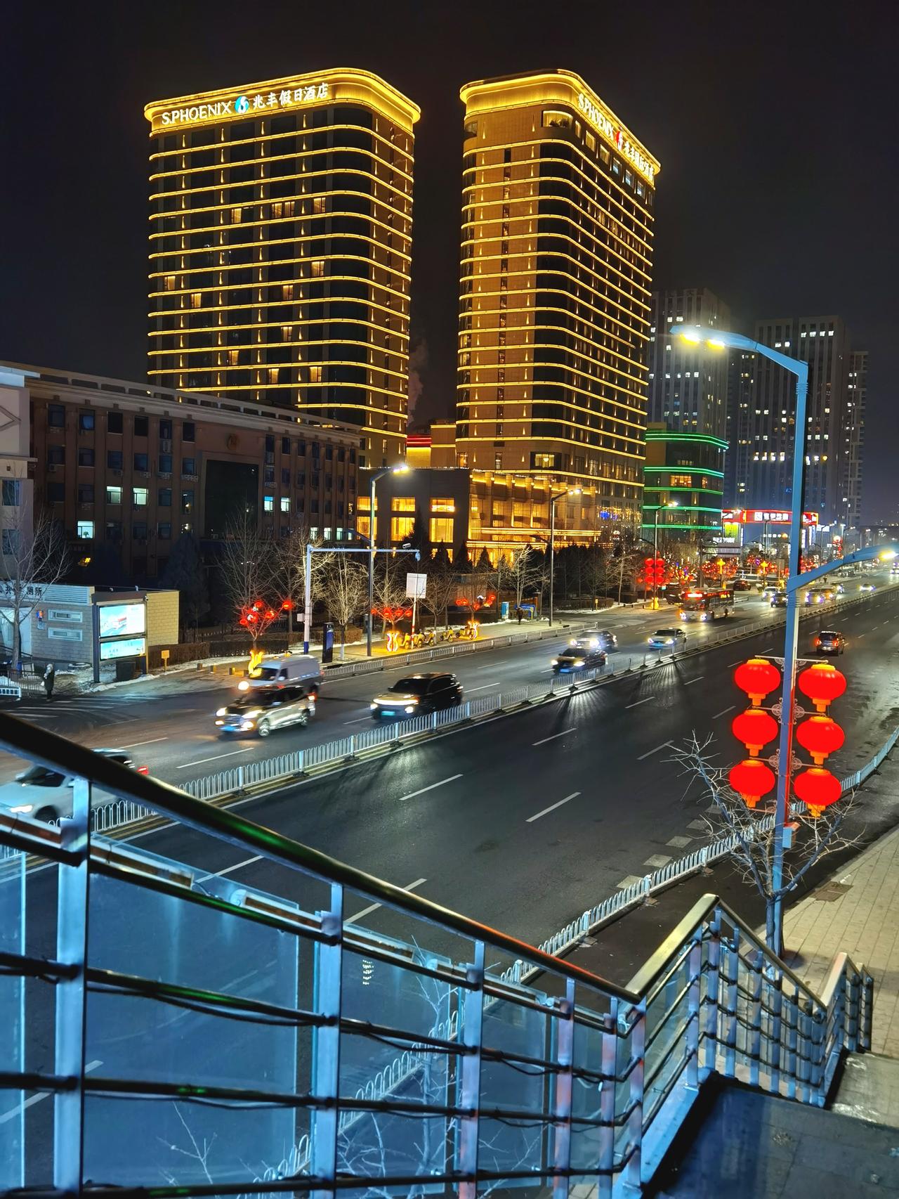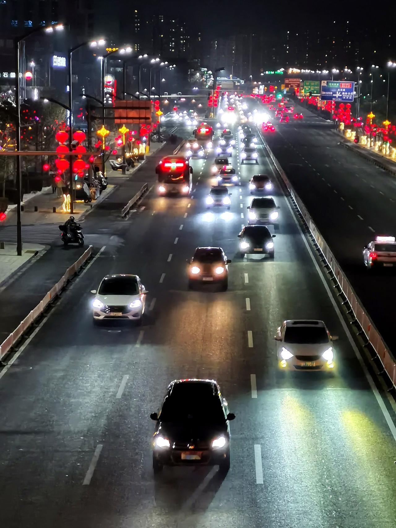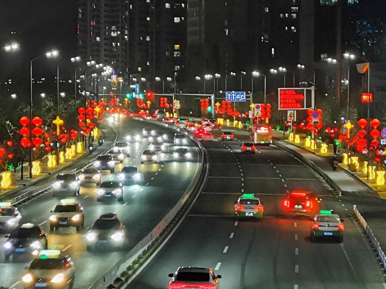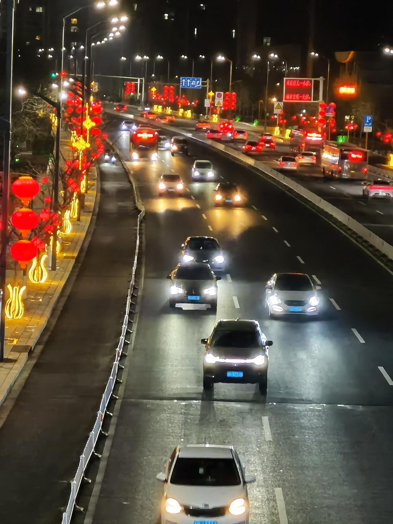 迎宾路是承德市区最宽敞,最畅通的一条路。 华灯初上,迎宾路上车流不息。红红的灯笼照亮了每一个忙碌一天回家的路。