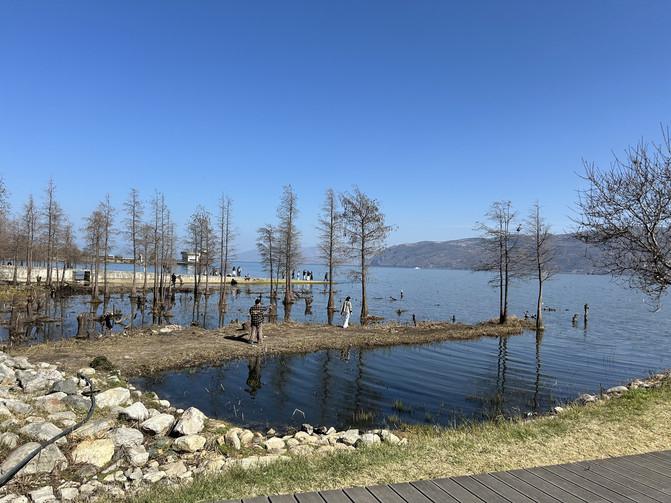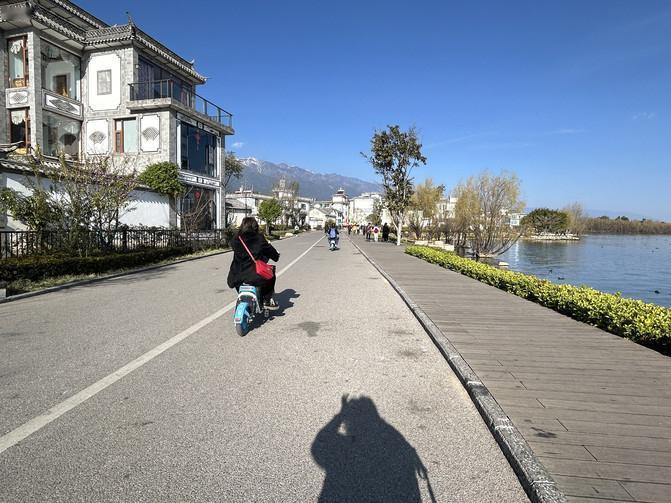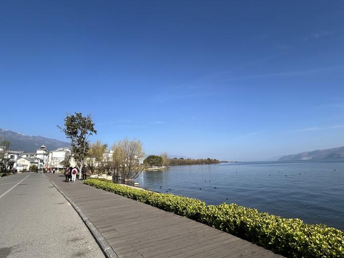 洱海不只是一片湖,她是大地的眼眸,凝望着苍山的巍峨,渔民划着猪槽船出海,渔船摇着橹声划破水面,渔网撒开的弧度,是岁月沉淀的默契。岸边的白族村落里,青瓦白墙倒映成画,炊烟袅袅升起,藏着最质朴的烟火气,也藏着最绵长的时光故事。 骑行在环海西路,两旁是盛放的格桑花,风吹过的时候,澄澈的湖水像一块通透的蓝宝石,花香混着青草气扑面而来,一路串联才村码头、喜洲古镇、双廊古镇,青瓦白墙与湖光山色无缝衔接,傍晚还能在岸边吃一顿新鲜的洱海鱼鲜。