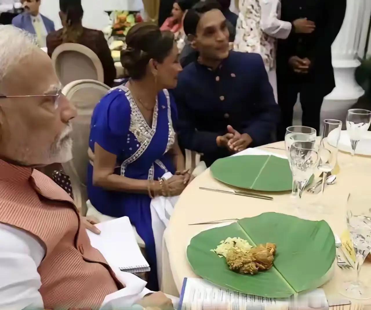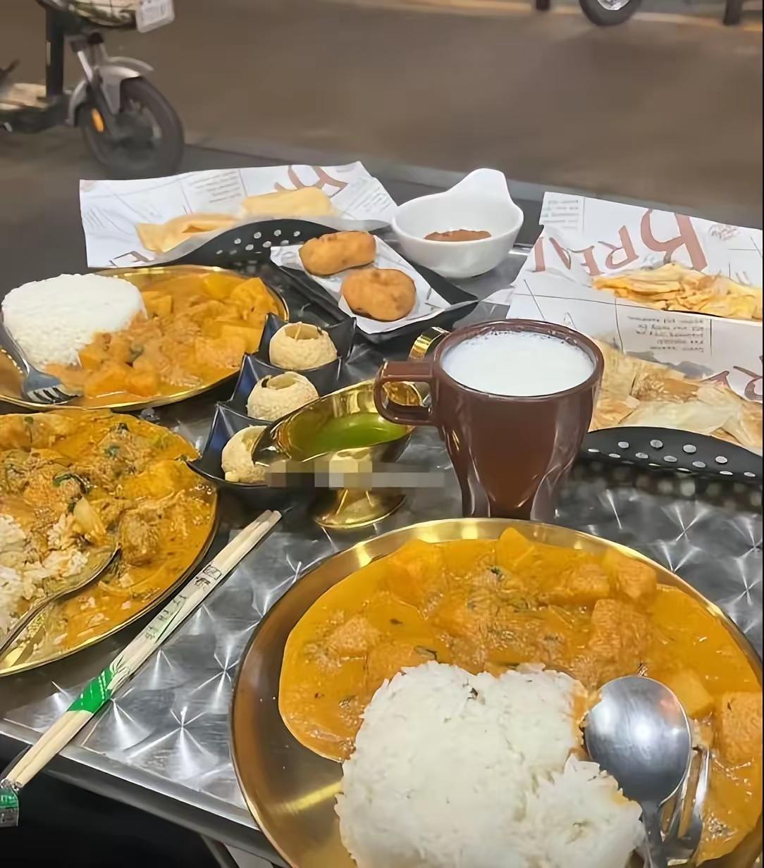 印度手抓饭也就罢了,偏偏配菜多是黄色,而且是稀稀拉拉的一垞。 虽说这是他们的民族特色和传统习惯,但真的让人感觉不适。 有人说,远远就能闻到一股浓浓的啫喱味,可怎么总让人觉得那是一股翔味? 在家里吃也就罢了,印度的国宴也是一群人在抓饭吃。 不知道莫迪能否咽得下他面前摆着的两坨饭?