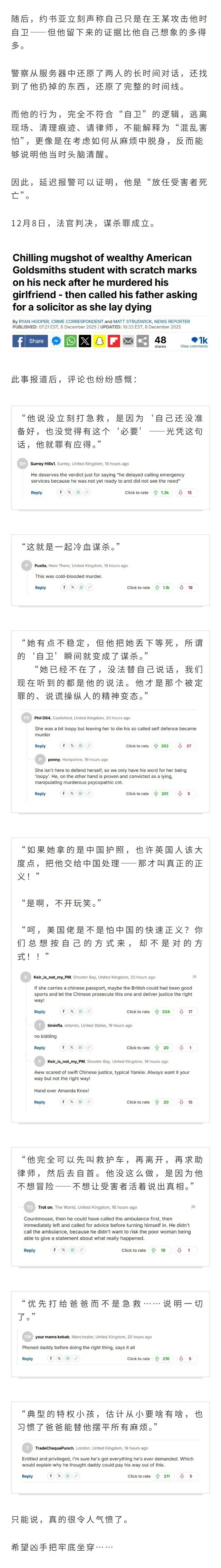 美国富二代在伦敦刺伤中国留学生女友,还大摇大摆地离开现场,留受害者在公寓里流血致死,还打电话给父亲求律师,试图以自卫定性?最近,此案终于审判:谋杀罪!