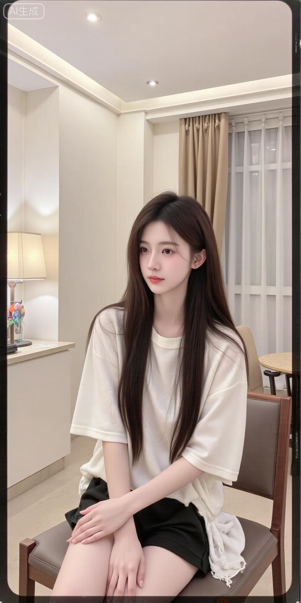 暖光灯裹着软室,白T搭黑短裤,长发垂落时,连屋里的静都浸了松弛的甜。 宅家舒适感