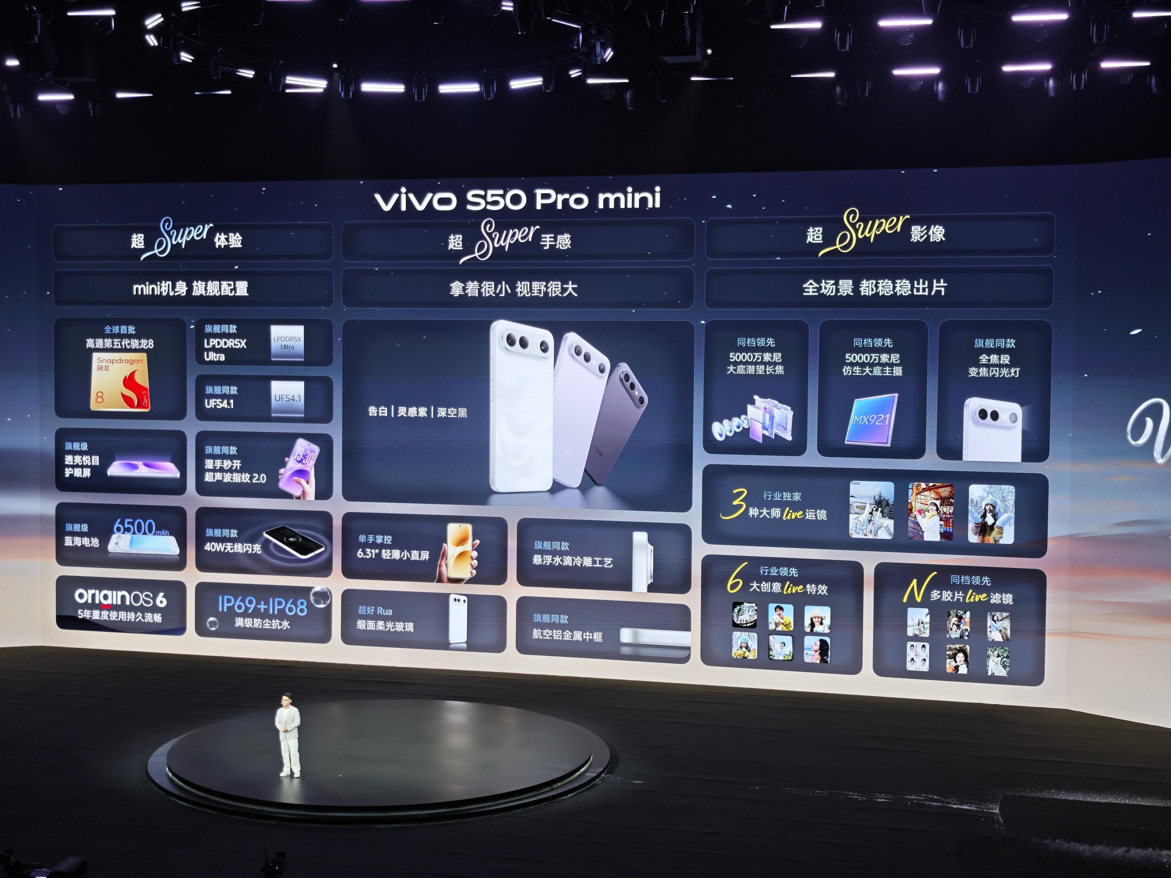 vivo S50 Pro mini价格出来了:12+256,369912+512,399916+512,4299主要规格:骁龙8 Gen5+LPDDR5X Ultra+UFS4.1,6.31英寸2640*1216p 直屏,前置50MP,后置50MP IMX921 OIS主摄+8MP超广+50MP IMX882 OIS潜望长焦,90W+40W+6500mAh,3D超声波指纹,满级防水,X轴马达等,金属中框+玻璃后盖,150.83*71.76*8.1mm,192g。感觉如何?vivo S50 Pro mini