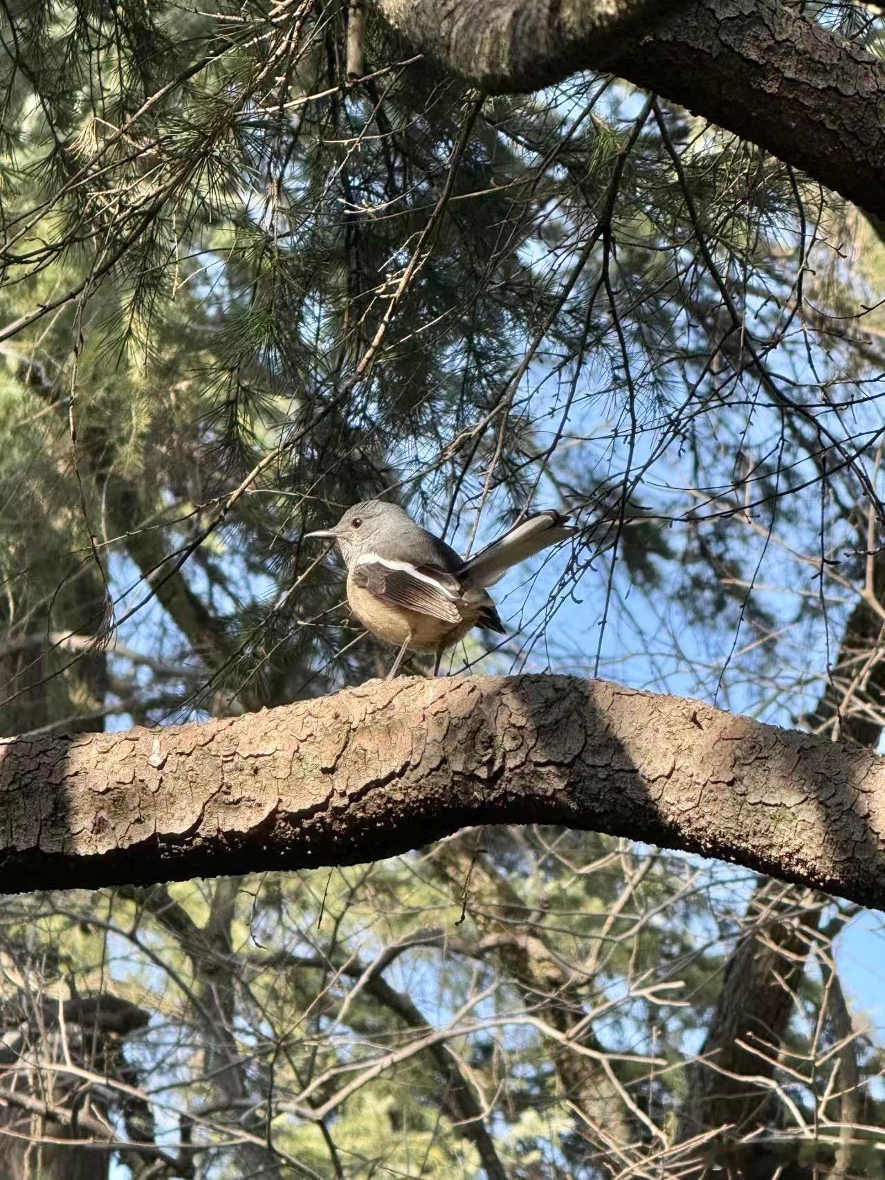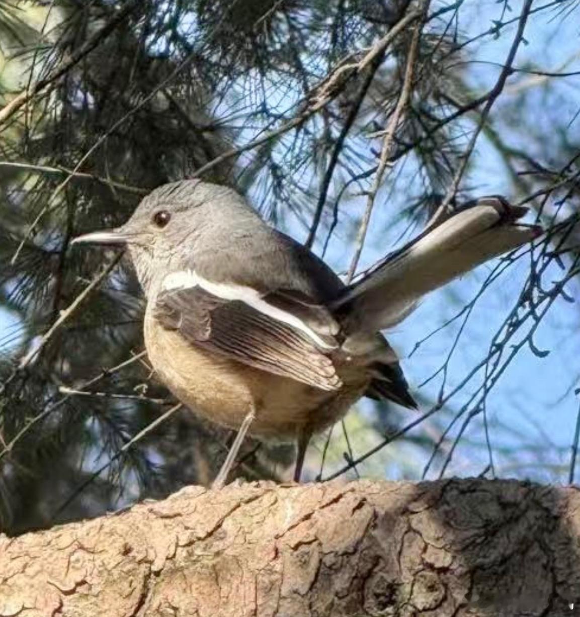 鸟粉投稿 树上的鹊鸲qú小肚子鼓鼓的
