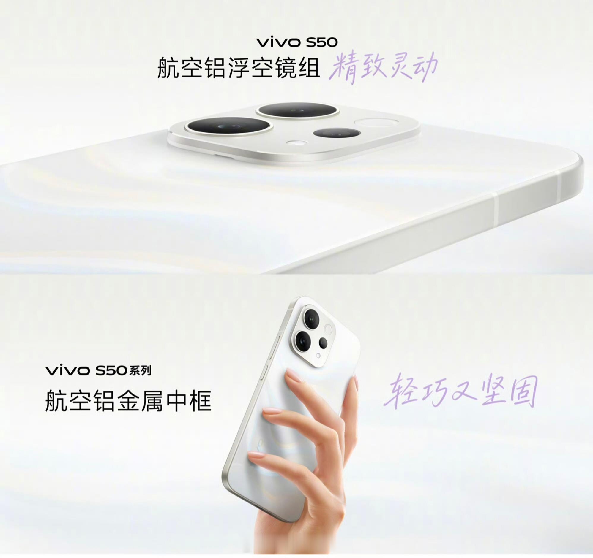 vivo S50系列发布会正在进行中,大家在看吗?这次一共有4种配色:告白、悠悠蓝、灵感紫和深空黑正面是一块6.59英寸的屏幕,7.49mm机身厚度,还有金属中框和超大R角设计,这次的颜值满分10分给多少?vivo S50