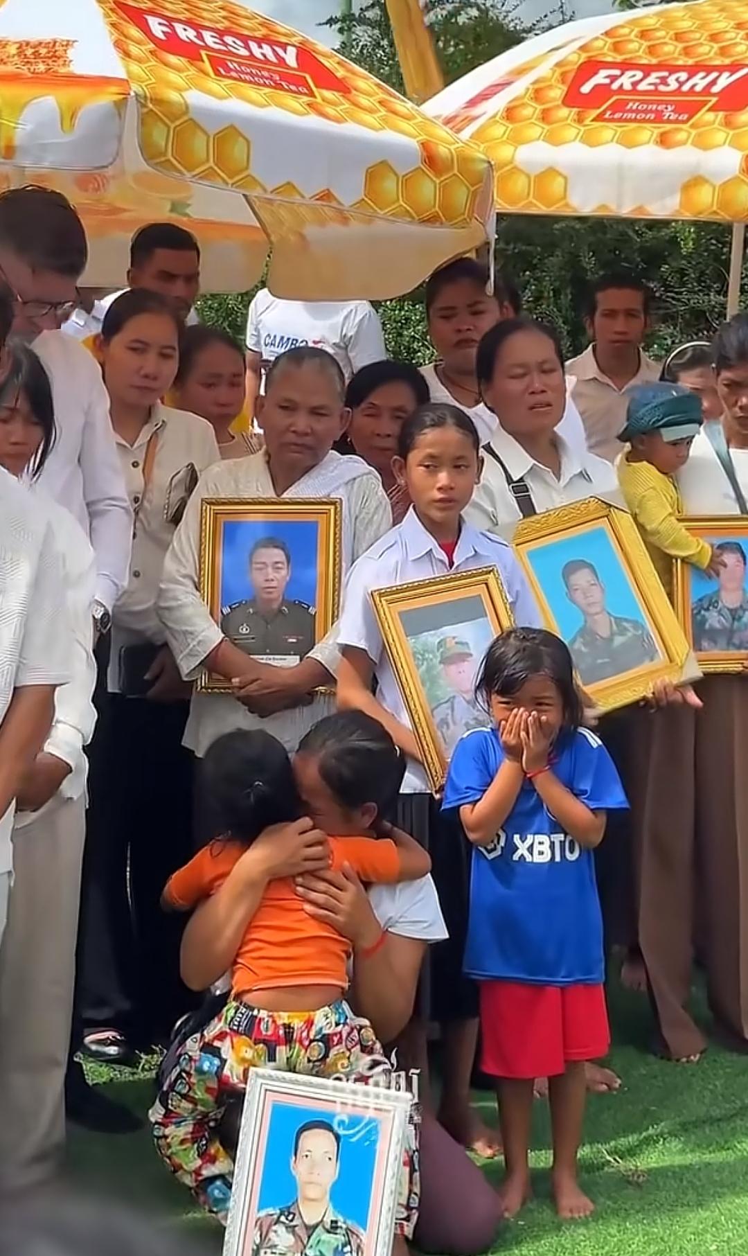 泰柬边境悲惨的哭声,三十多张年轻士兵的遗照被亲人捧在胸前,士兵大多来自贫困农村,津贴不足200美元,胜利者得到几米争议领土,而柬埔寨失去的却是整整一代年轻父亲。
