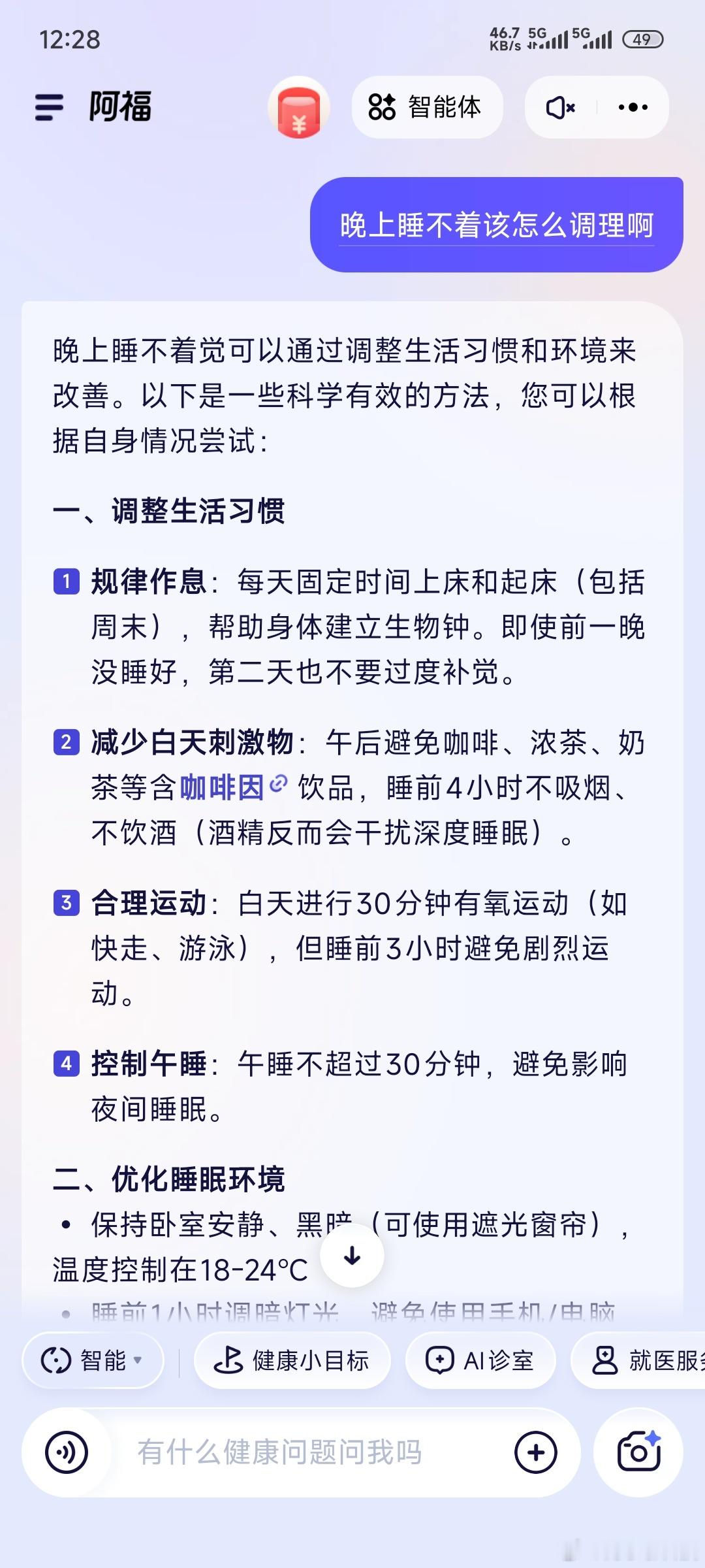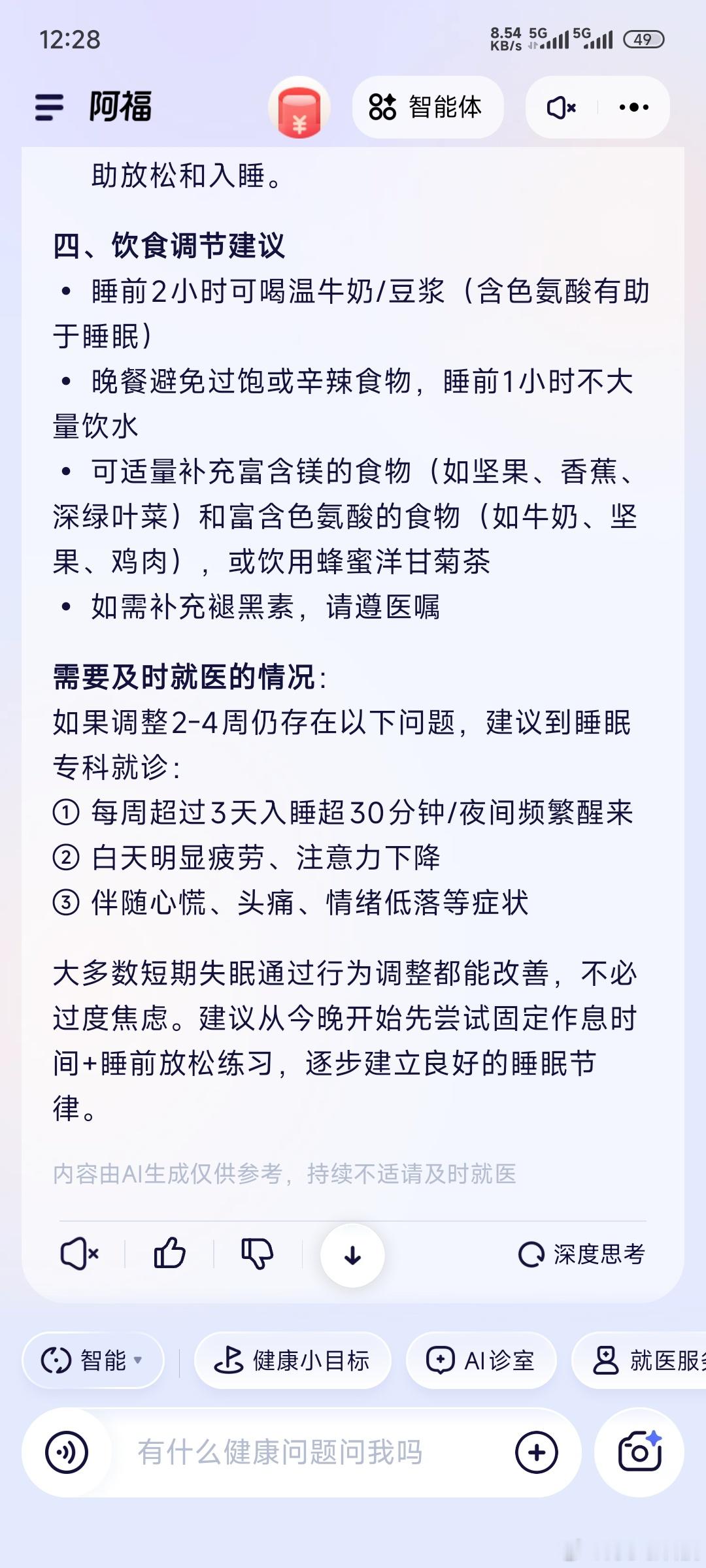 爸妈真是典型的“老来惜命”,一点小动静就瞎琢磨——早上起来头晕,就担心是不是血压出问题;天凉了膝盖发酸,纠结该贴膏药还是多穿点,去医院排队挂号又嫌麻烦,每次都让我远程操心。我自己用蚂蚁阿福一阵子了,国庆回家的就给他们手机装上了,没想到俩老人自己就玩明白了!不用打字,对着手机说话就行,问“血压偶尔高该吃点啥”“晚上睡不好咋调理”,阿福都能慢慢讲清楚,还会给具体的生活小建议。最省心的是健康陪伴功能,到点就提醒他们测血压、喝温水,比我天天打电话念叨管用多了。爸妈电话里面可劲的夸倒是让我来了兴趣,赶紧去了解了一下,原来阿福还有院士和好多名医帮忙把关,各地卫健委也认可接入了,难怪他俩这么夸呢,这么来看蚂蚁阿福APP月活用户已超1500万,月活能超1500万是真不奇怪——长辈们要的就是个操作简单、说人话、不忽悠的健康帮手,不用搞那些花里胡哨的,靠谱实用才真能留住人!