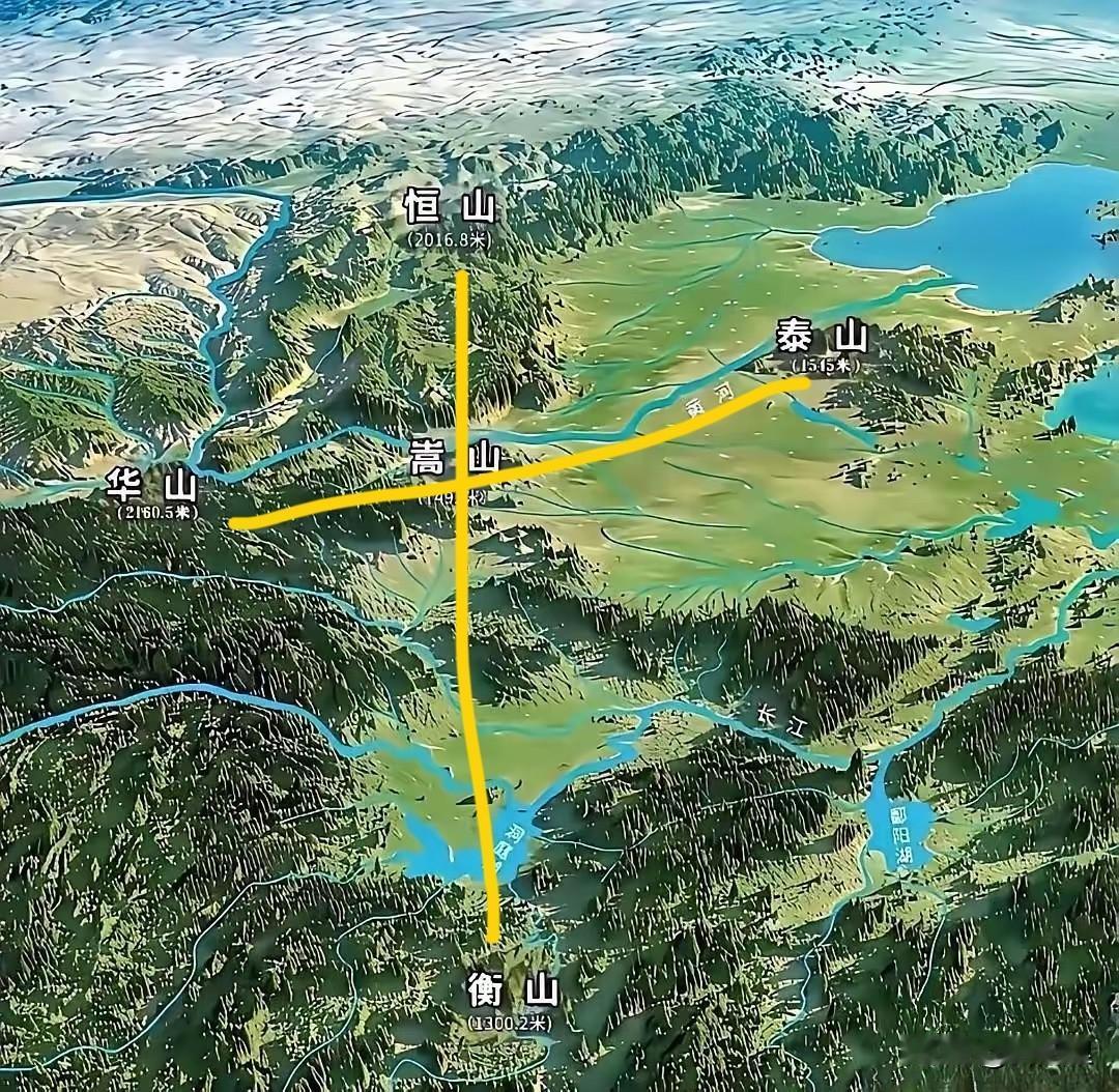 太神奇了,古人竟然在没有上帝视觉的情况下,能让分散在中国大地上的五岳,都能连接成一条近似的直线。比如北岳恒山中岳嵩山和南岳衡山几乎在一条线,而西岳华山中岳嵩山和东岳泰山沿着黄河,也分布在一条线上。这五座山范围反映出当时对天下的地理认知,也基本上划定了中国传统的中心范围。其他四岳都在群山环绕,唯有东岳泰山矗立在一马平川的华北平原之中,鹤立鸡群的高度,显出它独一无二的存在。而东岳在五行中属木,春,也代表着日出和生命,奠定了五岳独尊的地位。