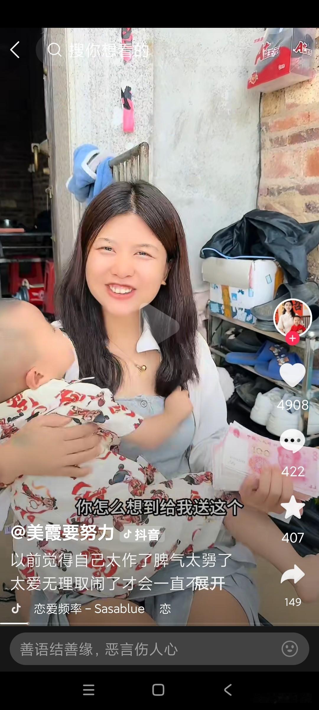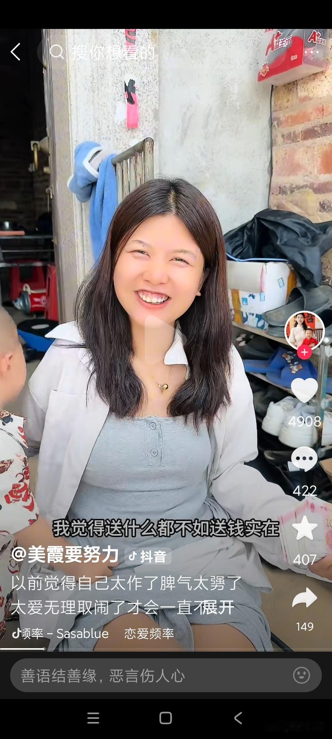 美霞看到男朋友送钱,嘴巴从视频开头一直笑到尾! 美霞生日的那天,康师傅手里拿着三万块, 悄悄走到美霞面前,喊生日快乐美霞,美霞看到康师傅手里拿的是钱,三万块这么多递过来,美霞高兴不得了,哦"一连笑了5个,呵呵呵呵呵🙄嘴巴一直笑着合不拢嘴, 美霞问康师傅,你怎么想到给我送这个?康师傅说,我觉得送什么都不如送钱实在,康师傅也挺了解美霞的,知道美霞喜欢什么,不喜欢什么,送钱给美霞是最实在的。 美霞说,确实我这个年纪,我觉得你送什么还不如送钱实在,美霞又连笑了两个,呵呵,问康师傅,你不会觉得我现实吧? 康师傅把美霞哄得,嘴巴从视频开头,一直笑到尾都没有停过,笑得见牙不见眼了。 康师傅还是继续哄美霞,叫美霞你只负责开心就是了,美霞觉得自己掉进了甜蜜雚子了,跟着康师傅又送了一条金项链给美霞,美霞更开心更高兴了。