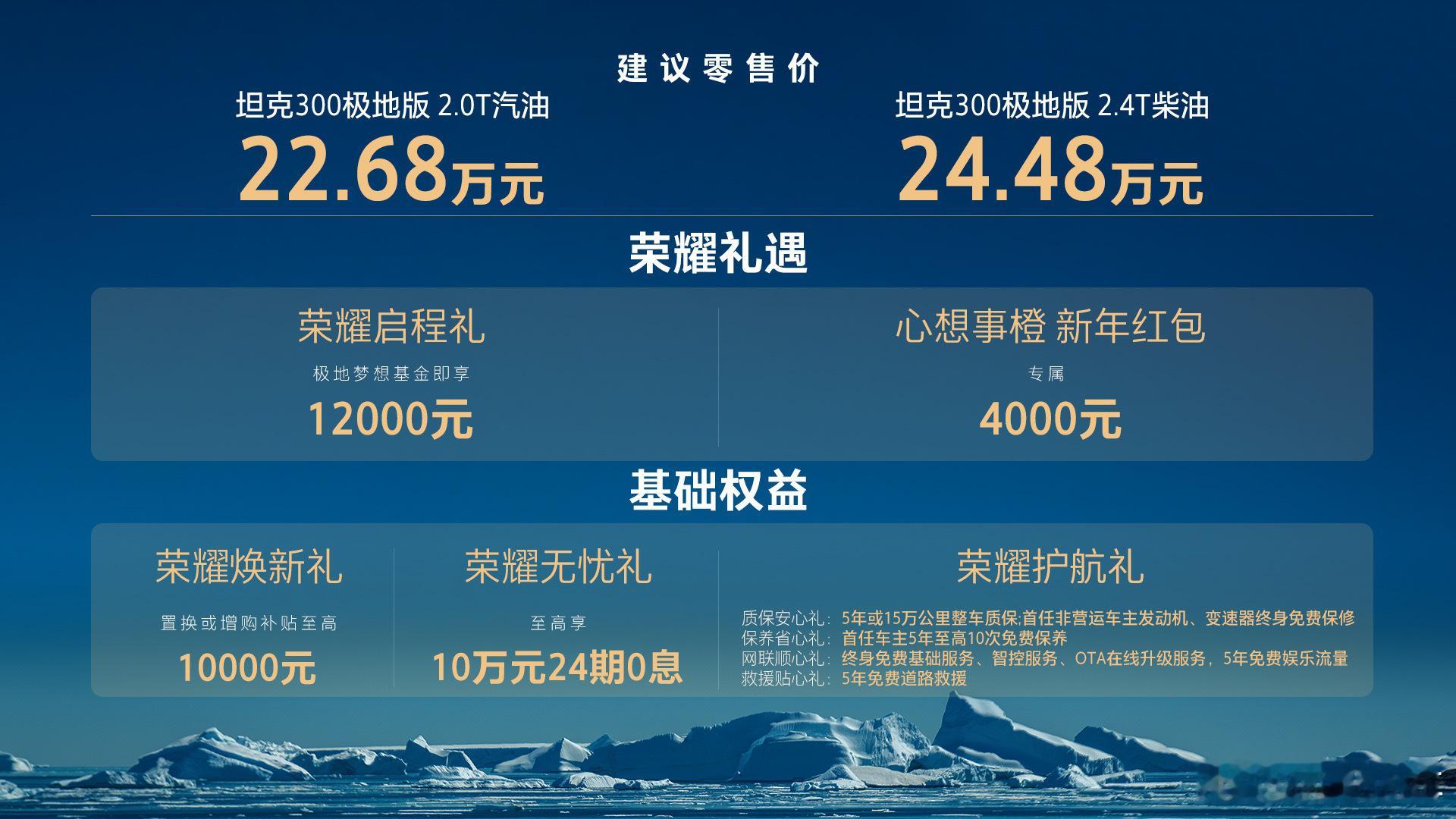 那么多方盒子越野,还是坦克300最成功,已经卖了50万台了,14款车型随你选。前段时间国家科考队用的那个极地版也上了,汽油22.68万,柴油24.48万。国家科考队背书,跟那些方盒子样子货可不一样!