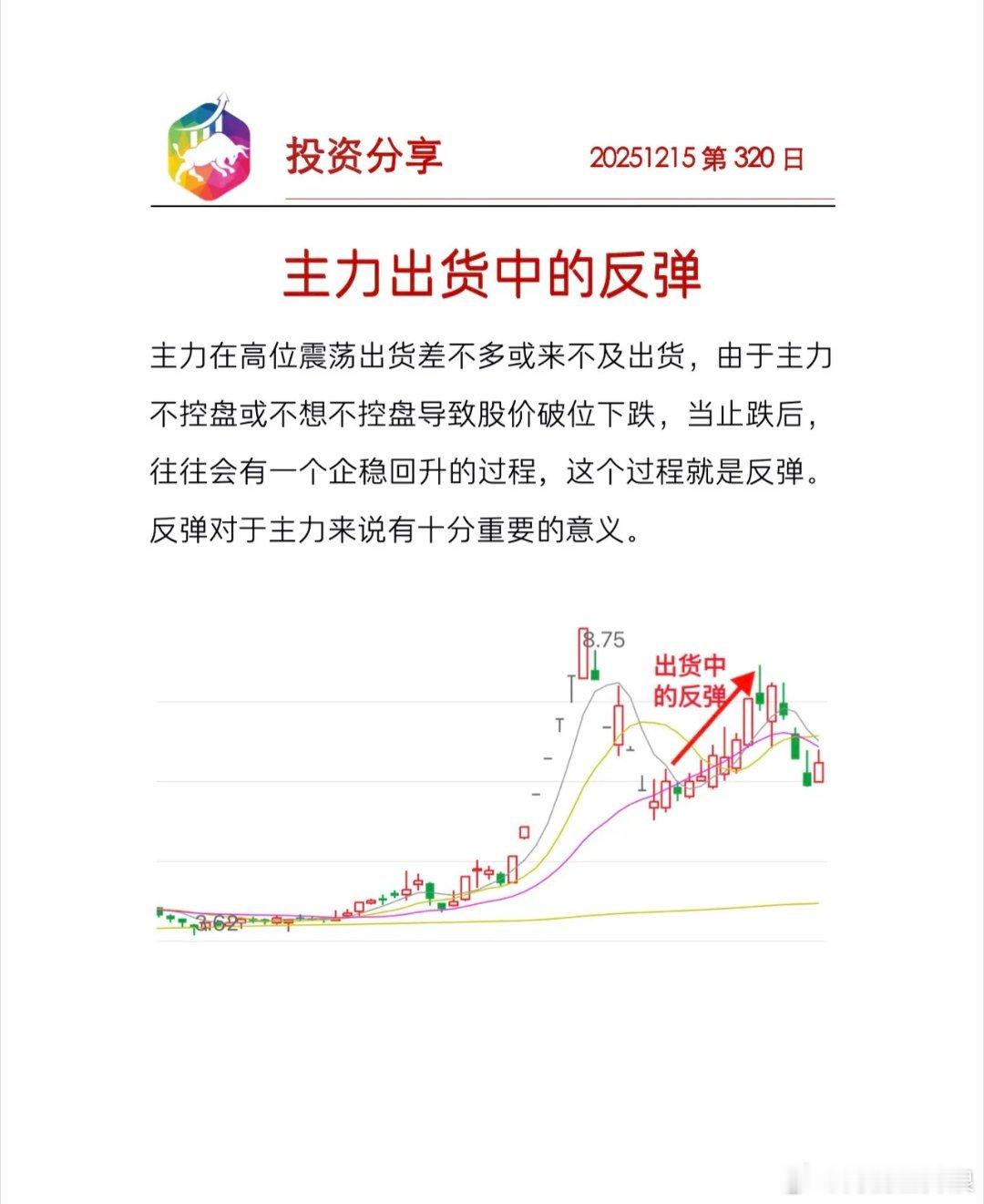 主力出货过程中反弹主力出货中的反弹其实就是轮回头,对于主力来说,适当的反弹可以为
