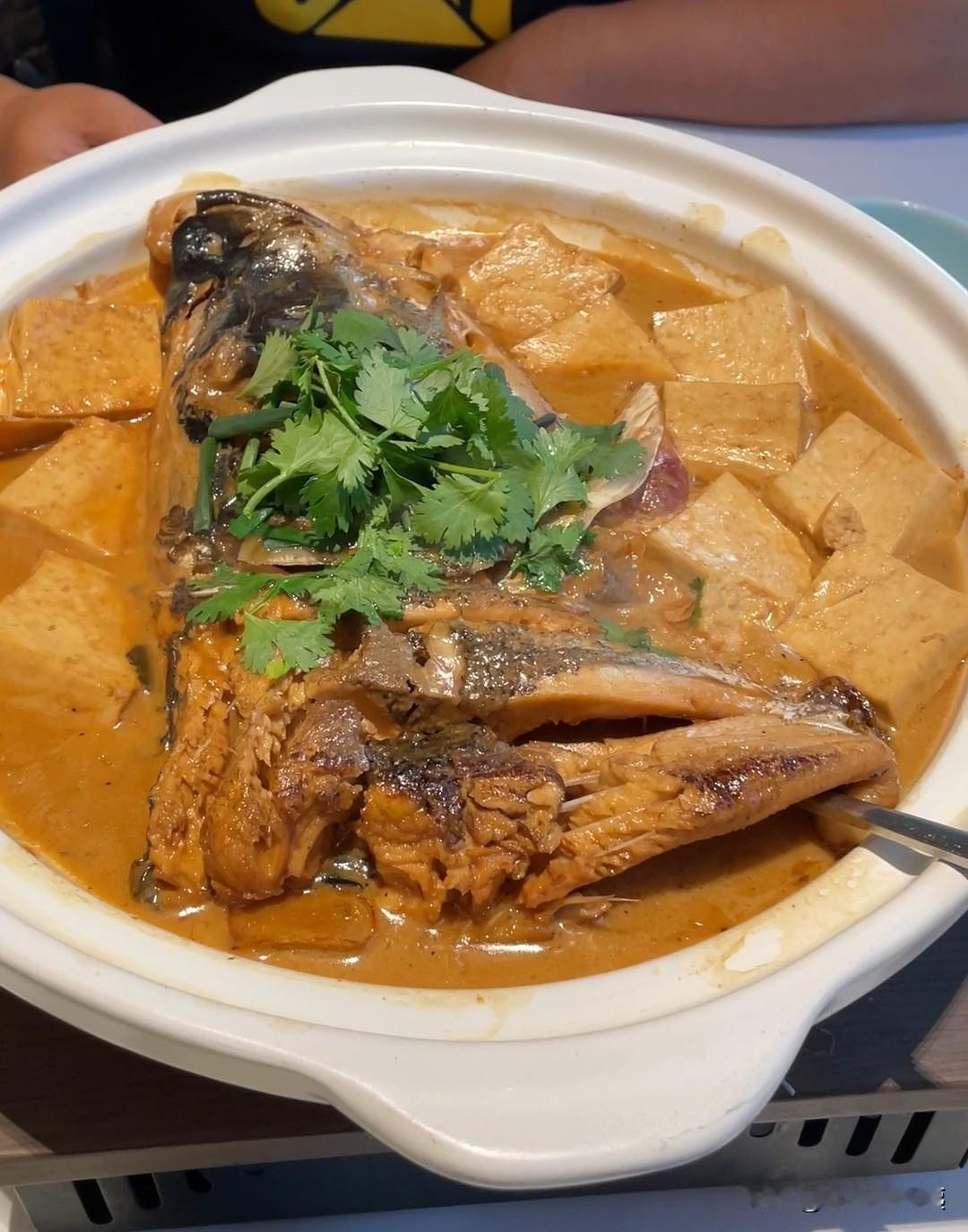 老伴儿说想吃响油鳝糊了, 儿子马上安排上,直奔北京新世界森隆饭庄,但是我更喜欢吃今天这道家烧碟鱼头炖豆腐。 鱼肉“嫩”与豆腐“滑”双重口感 碟鱼头骨软肉厚,煎后再炖,一抿脱骨;嫩豆腐吸饱鱼汤后鼓胀如海绵,入口即化,两者口感互补,层次丰富。 碟鱼头富含DHA、EPA和胶原蛋白,豆腐补充蛋氨酸与钙,二者协同“补脑、补钙、润肤”;全程只靠火候与食材本味提鲜,老人、孩子。 一句话总结:香浓汤汁裹着软滑鱼脑与嫩豆腐,鲜到“连碗底都要舔光”,是家常却又不失仪式感的高营养炖菜。 遗憾的是还缺烙饼,下次再来吃这道菜,我一定带着一张烙饼来。鱼汤泡饼那吃着才过瘾呢。