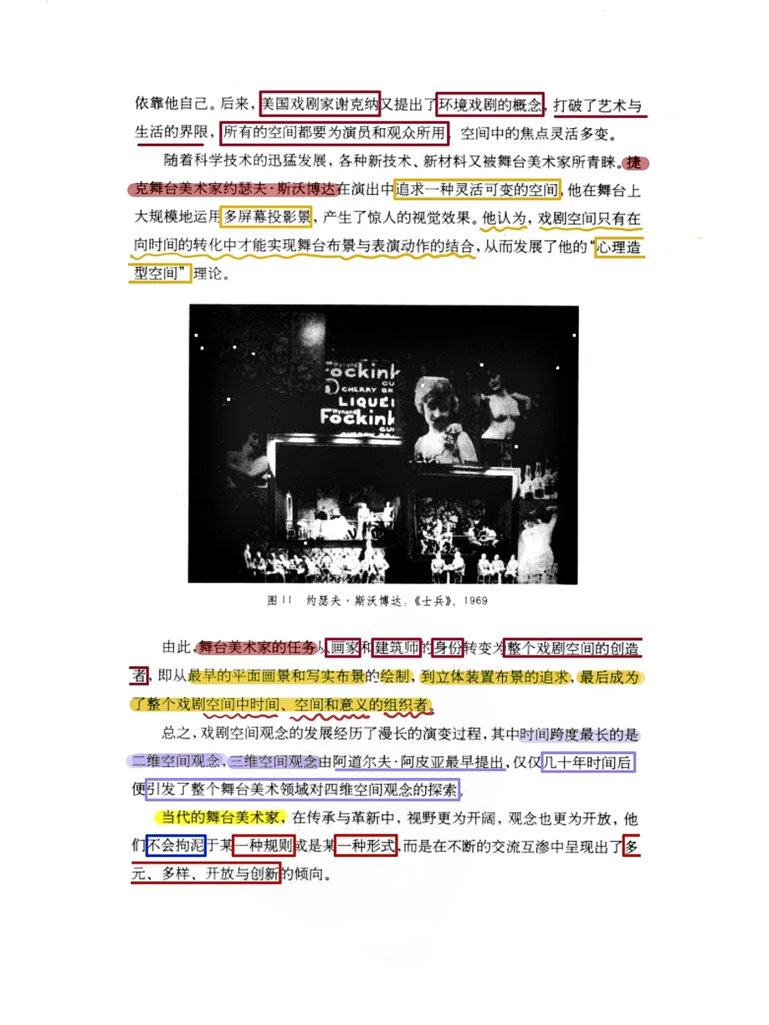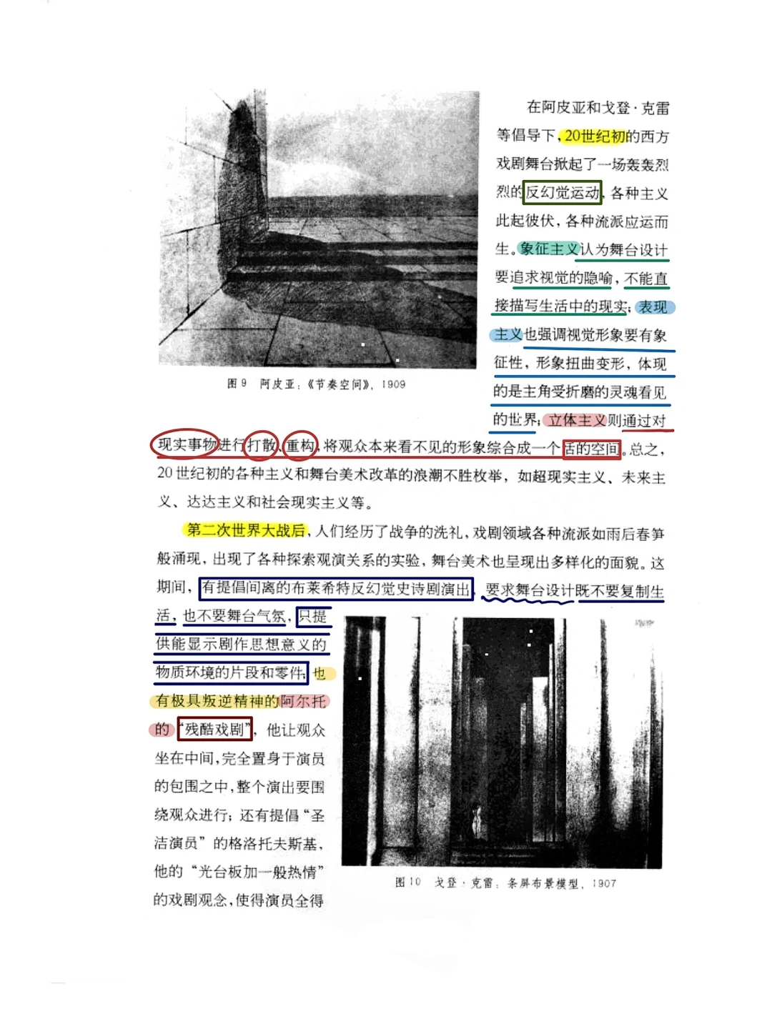 戏剧空间观念的发展经历了漫长的演变过程,其中时间跨度最长的是二维空间观念,三维空间观念由阿道尔夫•阿皮亚最早提出,仅仅几十年时间后便引发了整个舞台美术领域对四维空间观念的探索。 当代的舞台美术家,在传承与革新中,视野更为开阔,观念也更为开放,他们不会拘泡于某一种规则或是某一种形式、而是在不断的交流相互渗透中呈现出丁多元、多样、开放与创新的倾向。 舞合设计师的任务就是根据演出文本的情景需要创造一个特定的戏剧空间。
