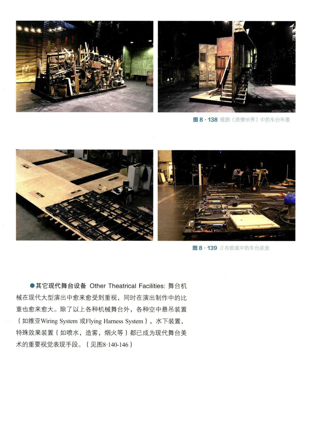 ✏️现代的车台主要用于搬动较重的立体布景。一般情况下,都是将一组布景固定在有10厘米-20厘米厚度的平台上,平台下方装有轮子,这样便可以将这组布景单元在舞合上前后左右移动。