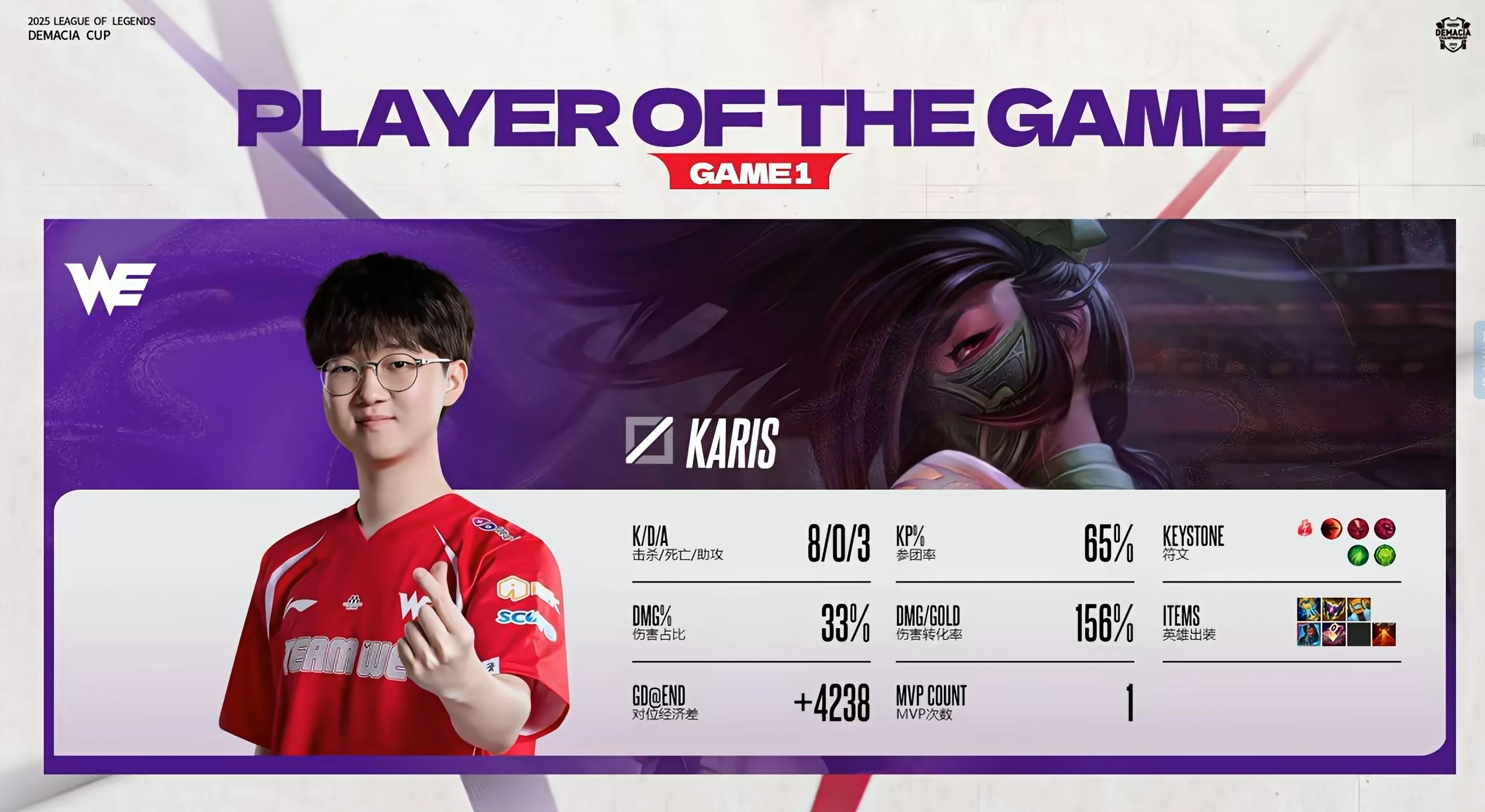 【2025德玛西亚杯第一阶段】FRK对阵WE恭喜WE先下一城,MVP给到8