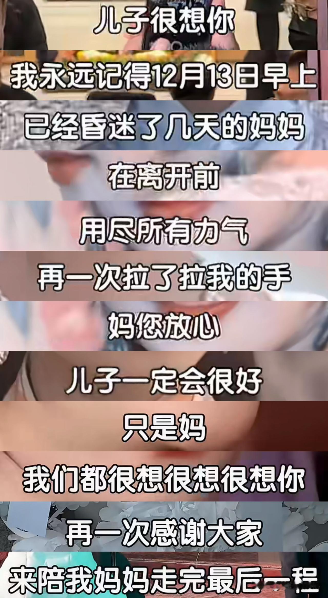 12月15日,何晴儿子在追忆母亲何晴时,提到何晴离世前用尽全身力气拉紧他的手! 虽然当时何晴已经一个字也说不出来了,但是他都明白,许何在追忆母亲何晴时向母亲承诺,自己会好好生活,不负母亲临终时的惦记,许何最后还特别感谢了今天到场参加母亲告别仪式的各位亲友! 这个孩子真的很懂事,他还有许亚军这个爸在,何晴可以放心安心的走了! 愿逝者安息,生者节哀!