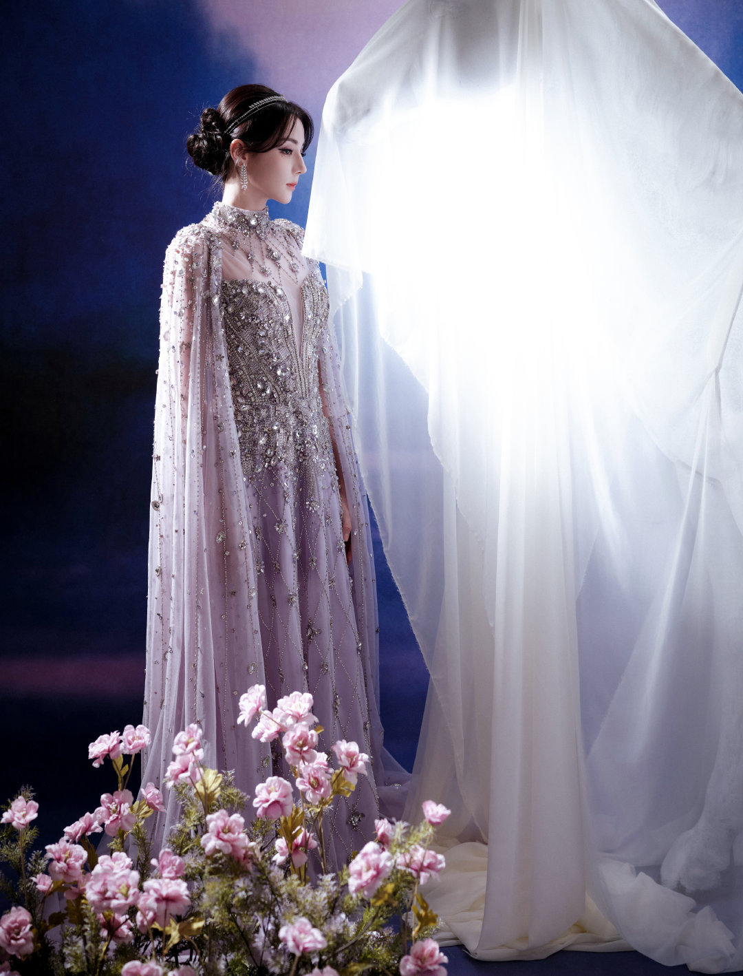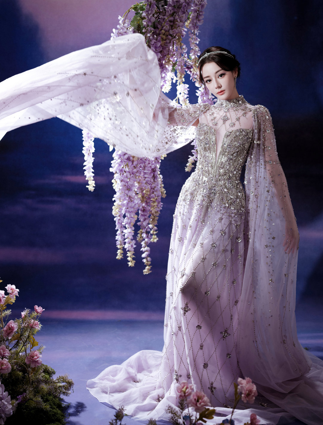 迪丽热巴|今日活动造型出图,身穿Khaled & Marwan 2025春夏定制系列,佩戴Messika高级珠宝,华丽的浪漫紫色,此女是神来的💜